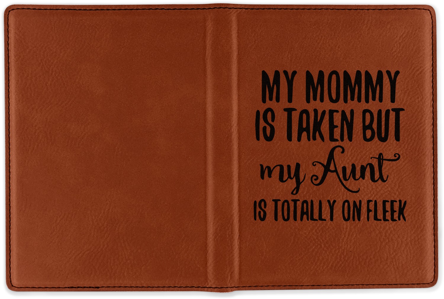 Although they are faux leather, these passport holders feel great in your hand. They are laser engraved either just on the front or the front and back. The image that is engraved onto your passport holder will be shades of black.