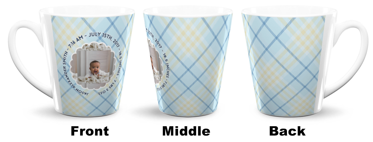 Sip and stay cozy with our custom latte mugs! Mugs are a simple gift for anyone, but make yours unique by personalizing our ceramic mugs for you and your close ones! Our tall latte mugs are great for an iced latte to start your day or the perfect size for some extra warm tea before bed! Use our smaller latte mugs to practice latte art! Browse our many designs, create your own, upload a photo or logo, and more with our online design studio!
