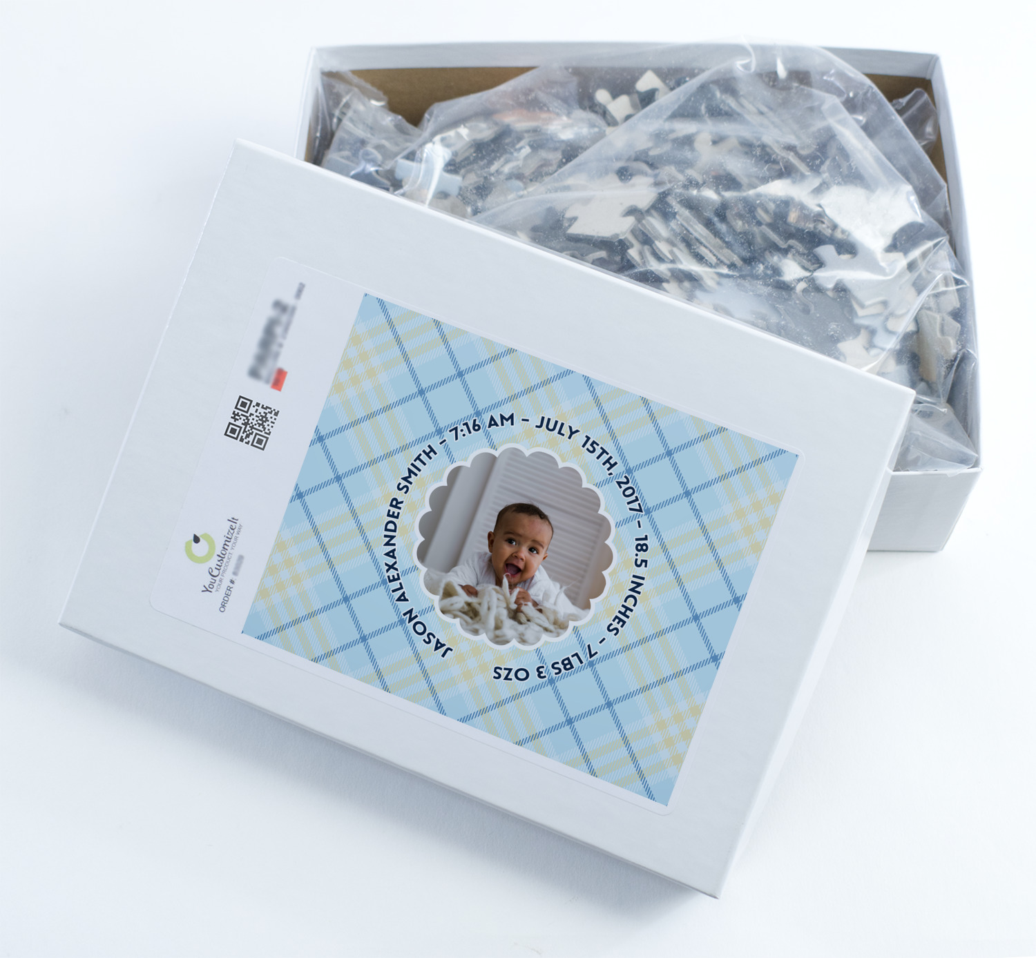 Depending on the look you are trying to achieve, you can add; a thematic pattern or background, with a photo in a frame and text or personalization to your puzzle. Basically if you can imagine it, you can design it!