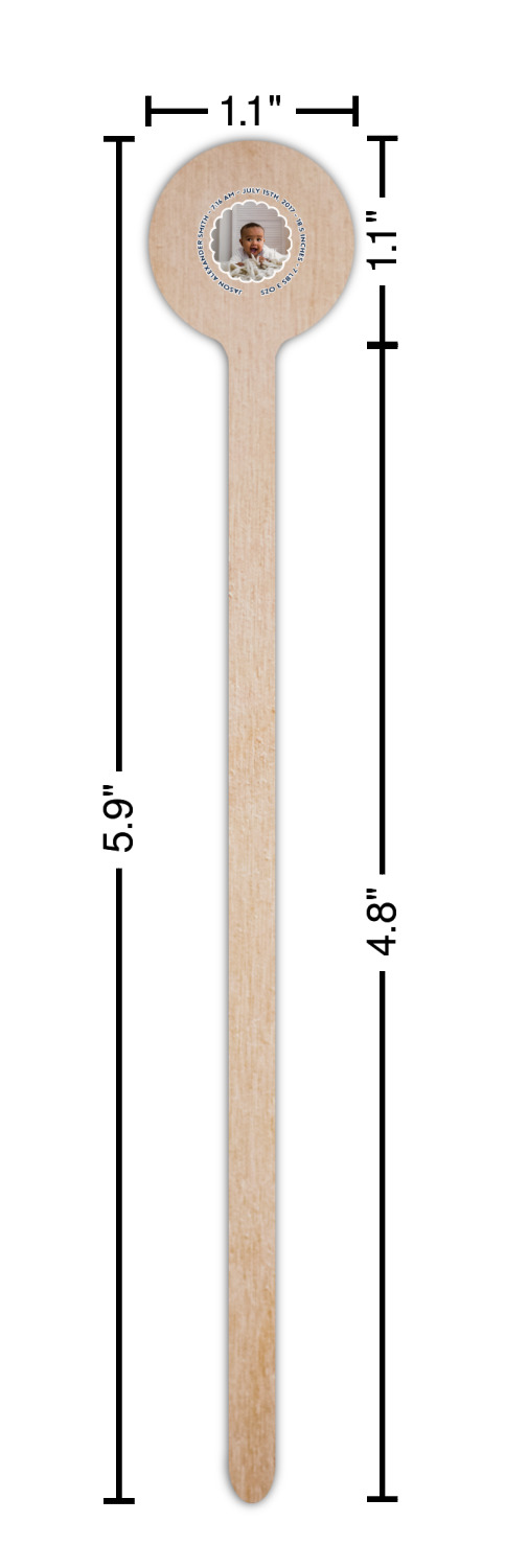 This design is for baby boys. The background is a baby blue plaid. In the middle of the design is a scalloped frame to upload your baby's picture into (make sure it is high quality!). Surrounding the frame is where your personalization goes. Put their name, birthday, or whatever you like.