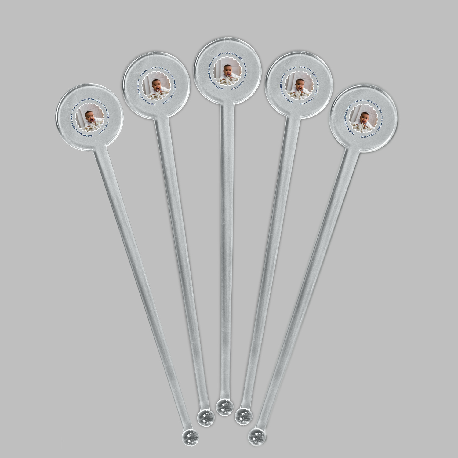 This design is for baby boys. The background is a baby blue plaid. In the middle of the design is a scalloped frame to upload your baby's picture into (make sure it is high quality!). Surrounding the frame is where your personalization goes. Put their name, birthday, or whatever you like.