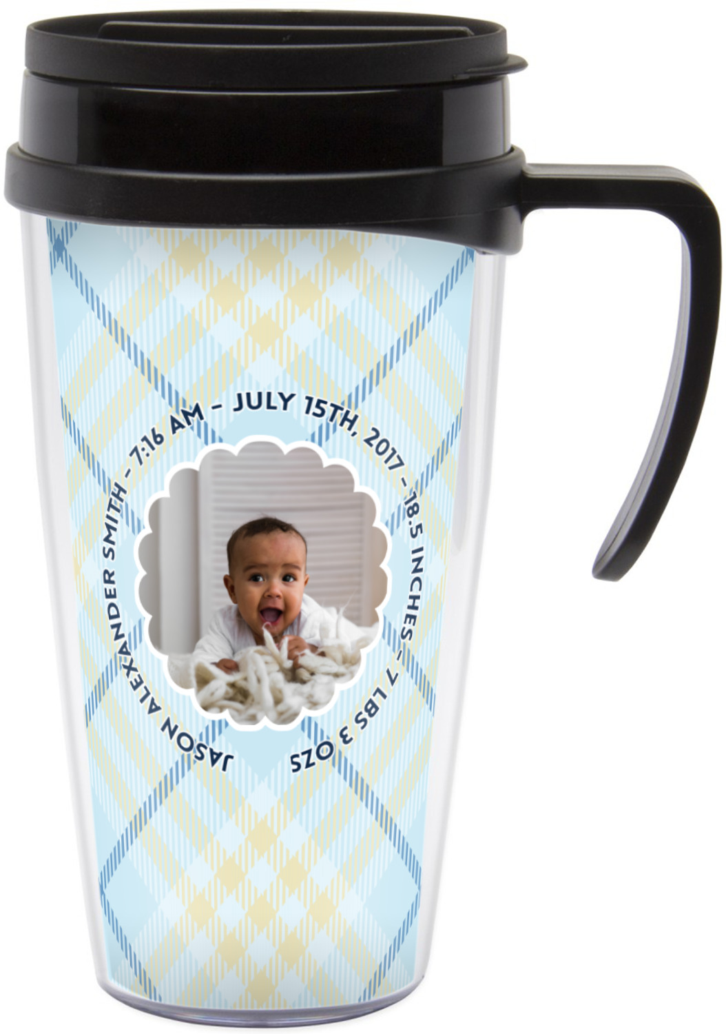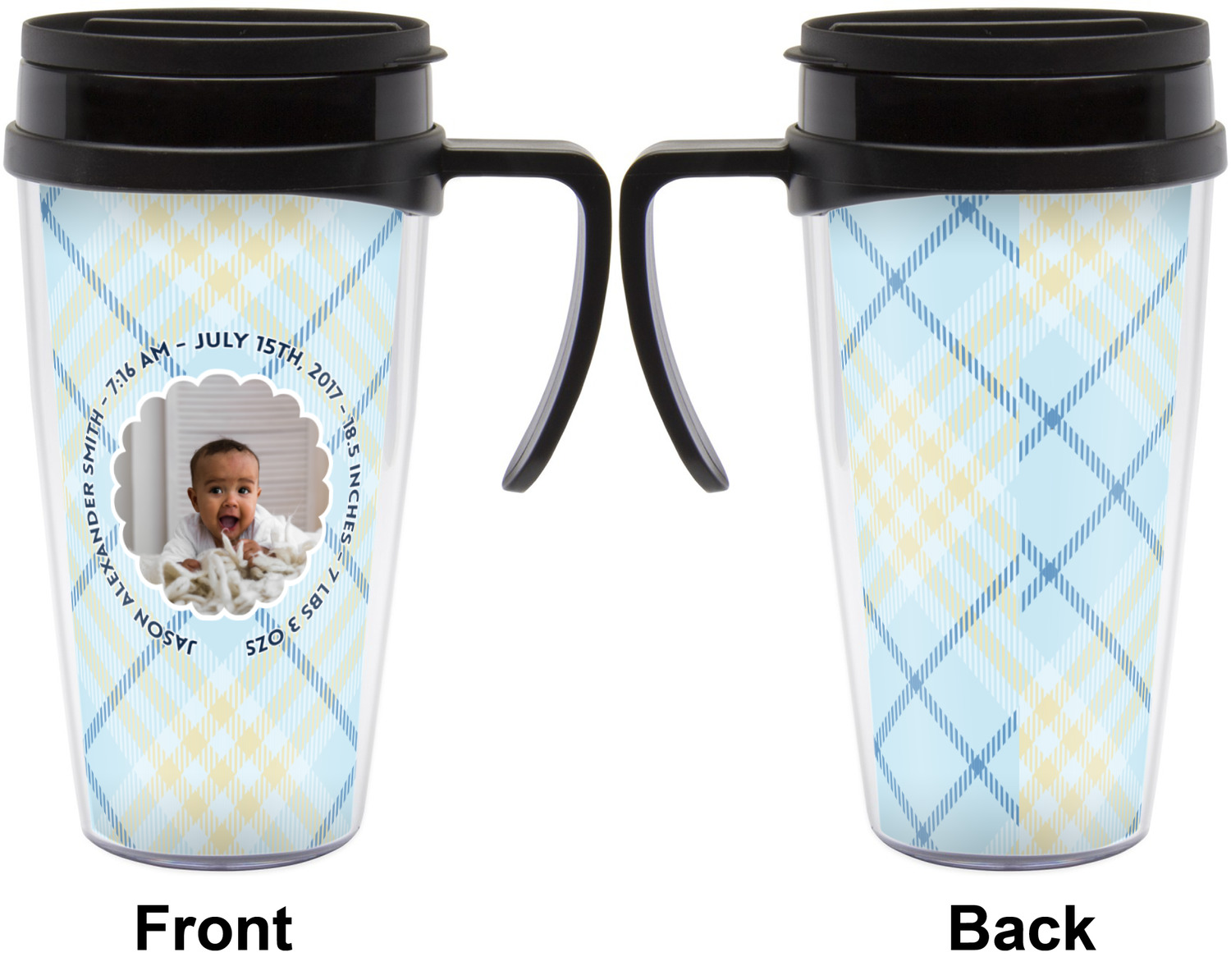 Keep your drink secure while on your daily commute with one of our personalized travel mugs! These travel mugs will add a splash of color and creativity to your kitchen counter-top, car cup holder, office desk, or wherever you choose to place them! With these custom mugs, you'll never have to settle for a boring, run-of-the-mill travel mug.