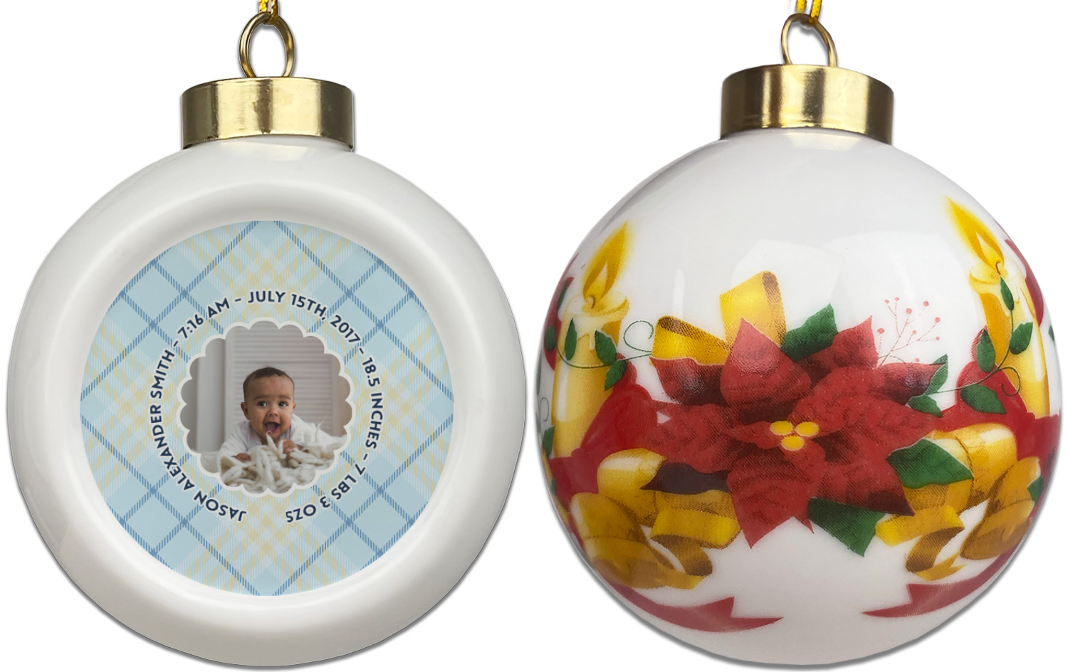 Tis the season to be jolly! Display precious memories and design them onto our custom Christmas ball ornaments! You can even upload photos for us to print on your personalized Christmas ornaments, a perfect way to welcome your baby's first Christmas! Christmas decorations bring more joy and warmth to holidays when they're personal!