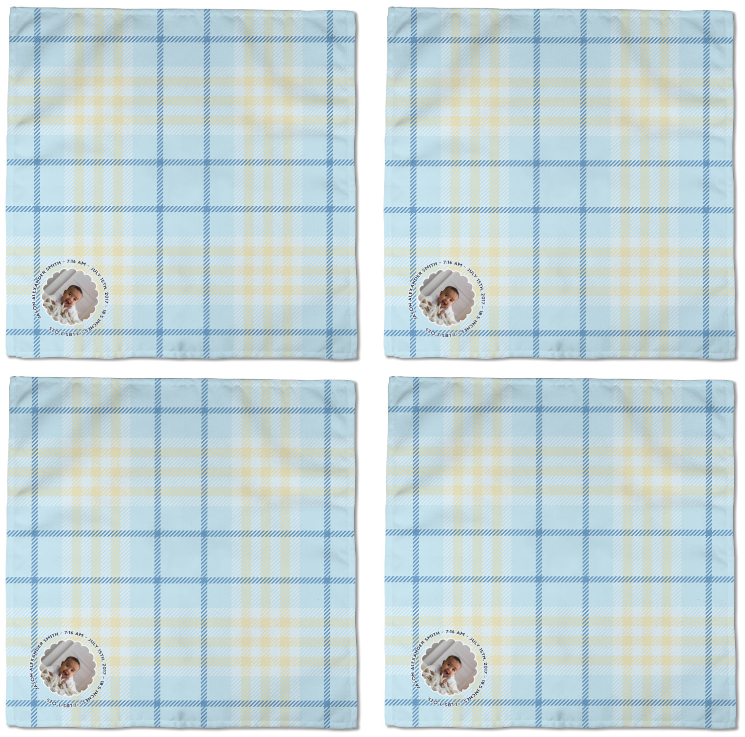 Each customizable cloth napkin is a polyester material guaranteed for long-term use. Since our napkins are cloth, it serves as a great reusable and eco-friendly dining decor. We sell personalized napkins individually or as a set of 4! Print your own unique design on all four napkins, or create four individual designs for each napkin! We offer two different napkin sizes - Cocktail napkins (approx. 10 x 10) and Dinner napkins (approx. 20 x 20). We print your design on one side, perfect for displaying your custom designed lunch napkins in any fold or table setting!
