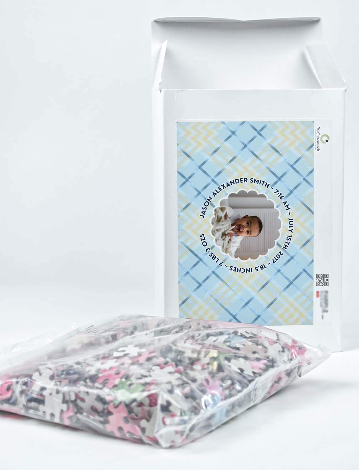 Depending on the look you are trying to achieve, you can add; a thematic pattern or background, with a photo in a frame and text or personalization to your puzzle. Basically if you can imagine it, you can design it!