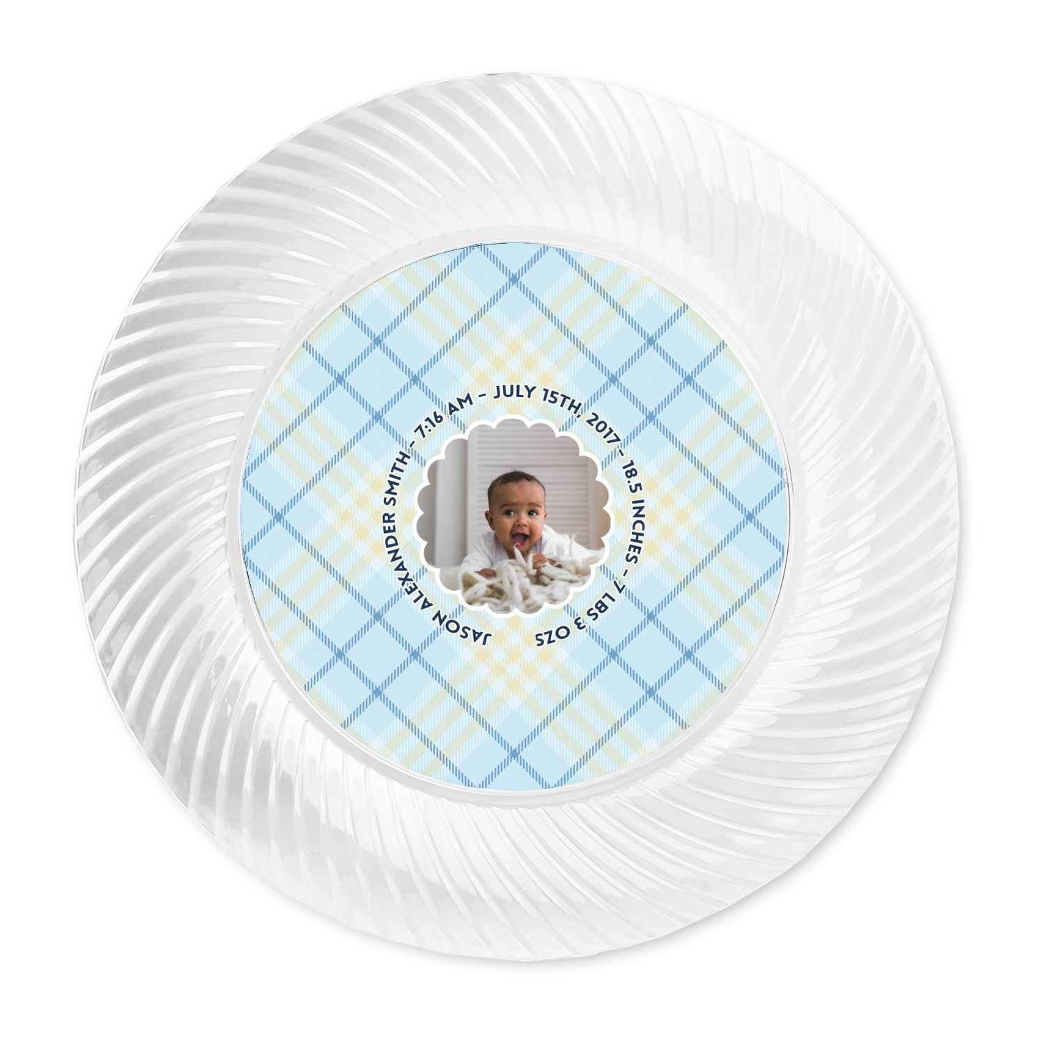 Made from a beautiful clear plastic plate as a base, your design is printed to the underside of the plate. The outside of these disposable plates has a classic swirl texture to it for a high quality look and feel.