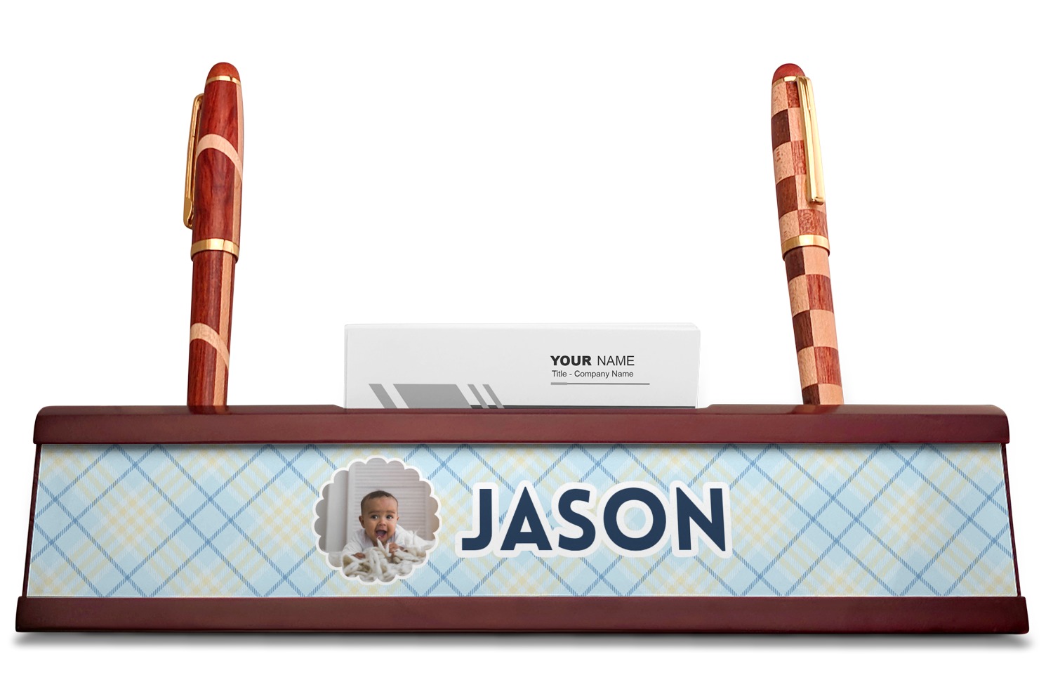 Add a sophisticated touch to your workspace with one of our name plates! These desk plaques even include a suave business card holder that will be sure to impress all of your clients!