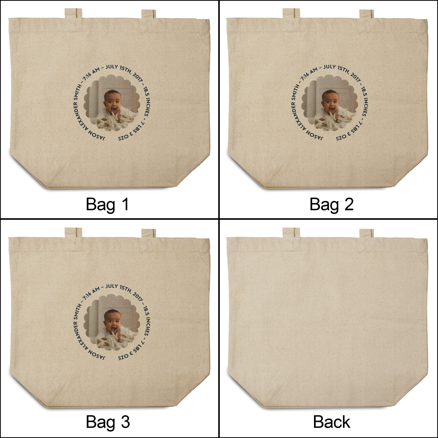 These cotton totes are washable and easy to care for, and they can be folded flat for storage. Your artwork, logo, or photo is printed in full color directly on the cotton tote in the front.
