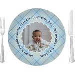 This design is for baby boys. The background is a baby blue plaid. In the middle of the design is a scalloped frame to upload your baby's picture into (make sure it is high quality!). Surrounding the frame is where your personalization goes. Put their name, birthday, or whatever you like.