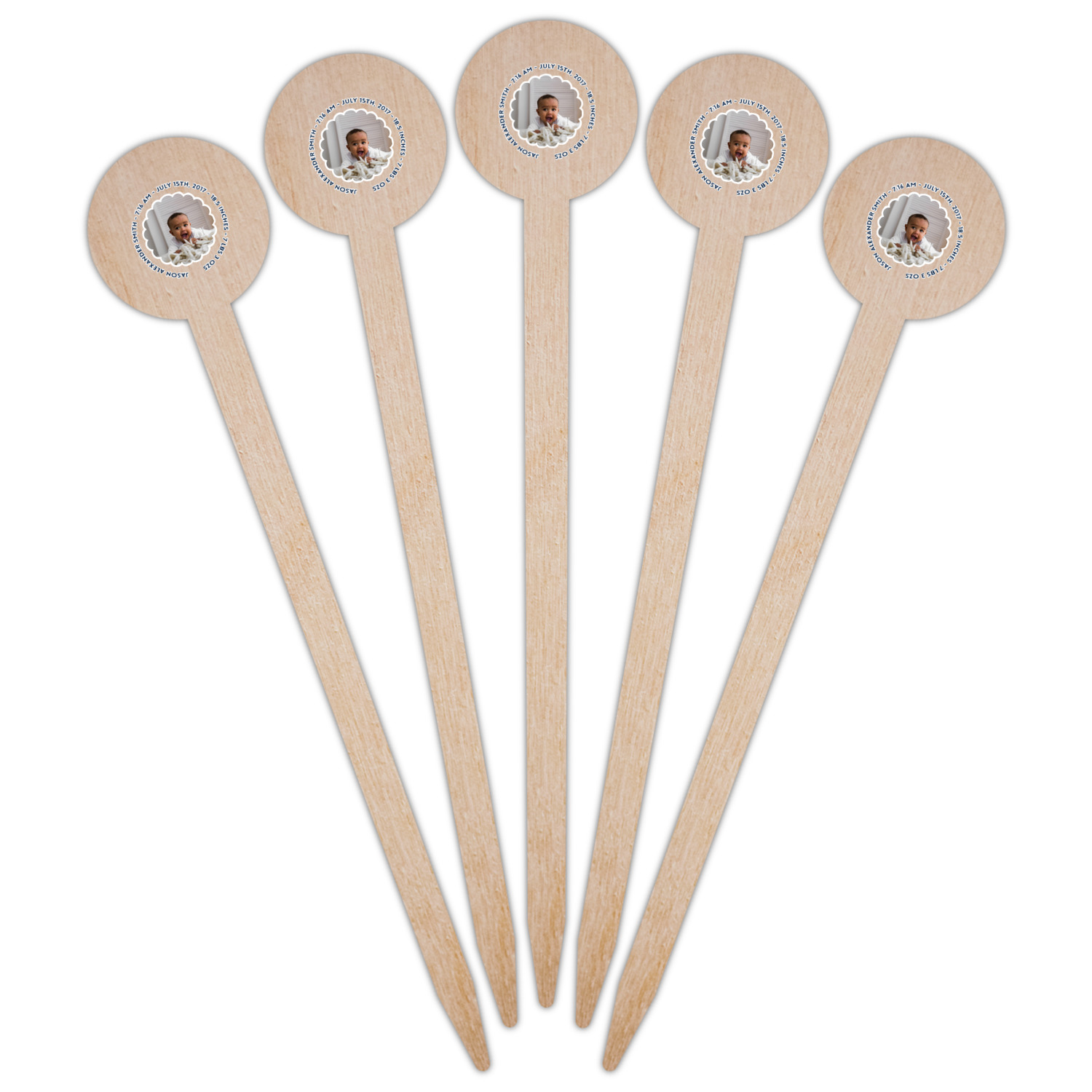 This design is for baby boys. The background is a baby blue plaid. In the middle of the design is a scalloped frame to upload your baby's picture into (make sure it is high quality!). Surrounding the frame is where your personalization goes. Put their name, birthday, or whatever you like.
