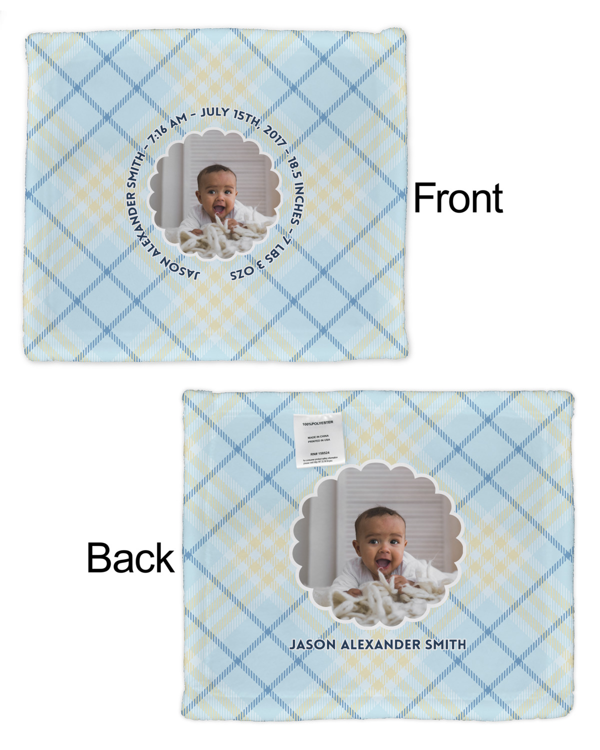 Our customized security AKA lovey blankets are available in 2 print styles - single sided or double sided. You can customize both the front and the back of the lovey security blankets. You have the option to choose different designs or the same design - the choice is yours.