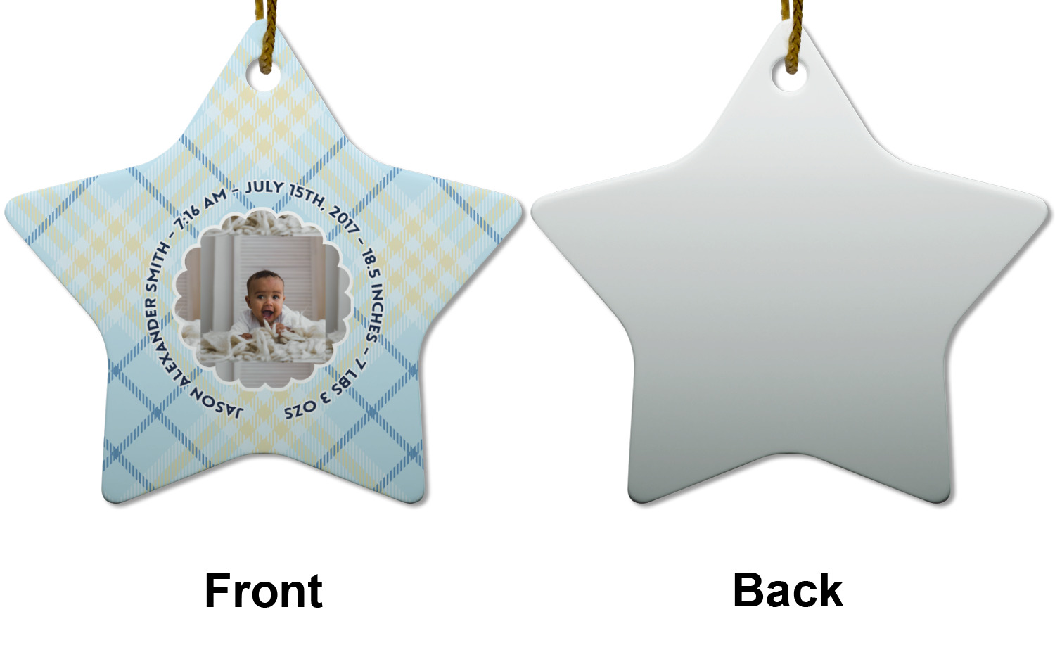 Have a happy holiday and share the joy of Christmas with your loved ones by hanging up personalized ceramic ornaments! Ornaments add a touch of who you are and the things you love onto the Christmas tree! Create custom ornaments for the kids and have them hang up their own star with their name, or pay remembrance this holiday to missed loved ones with our ceramic heart ornament. Browse many of our unique designs and customize them the way you'd like! From monograms, logos, and patterns, we have it all! You can even upload a photo of your family for us to print onto the ornament! The possibilities are endless!