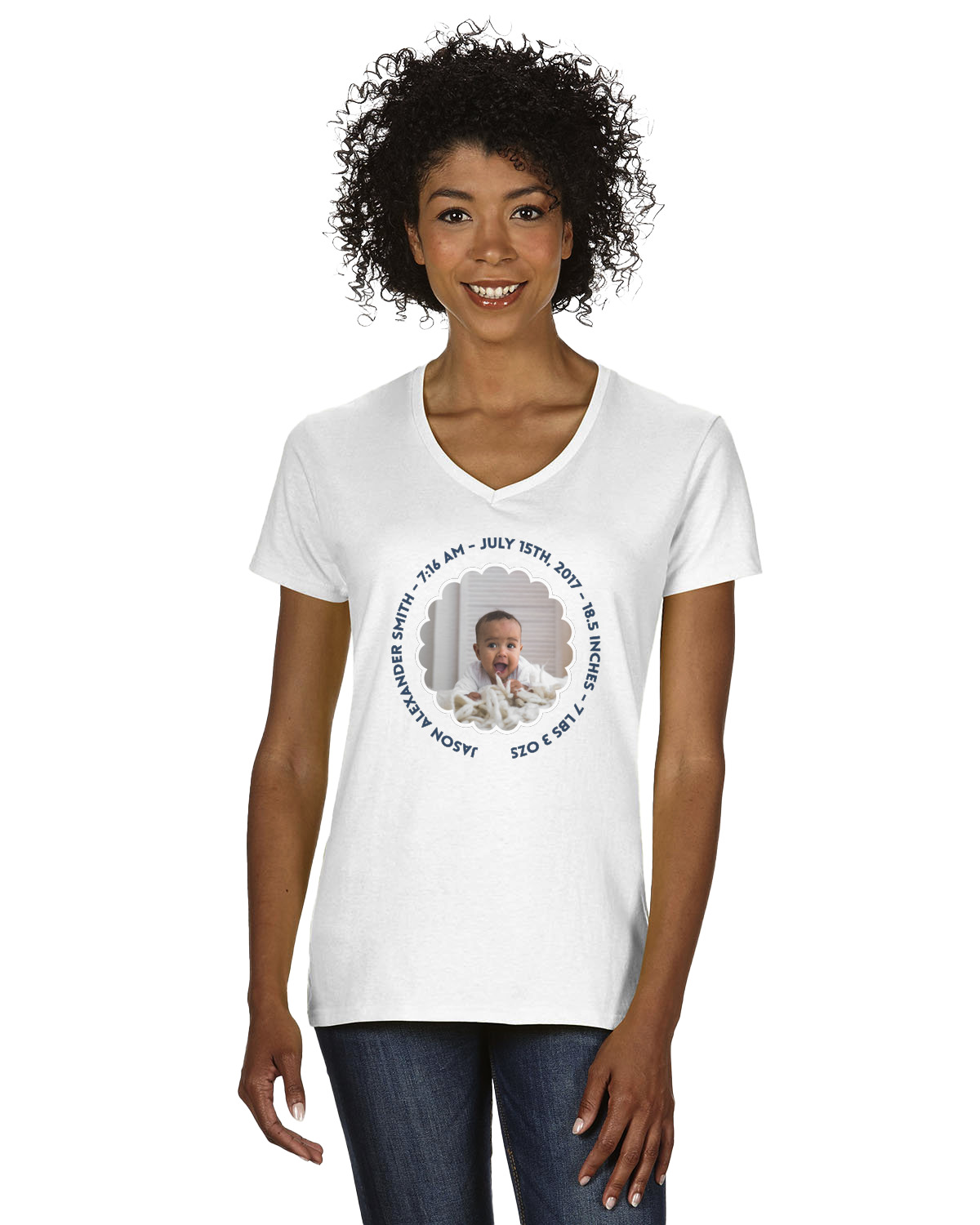 Introducing our versatile Women's V-neck shirt, tailored for a flattering missy contoured silhouette. Crafted from premium 5.3 oz. USA cotton with sustainable practices, it features cap sleeves and a tear-away label for added convenience. With sizes catering to all, enjoy comfort and style in every wear.