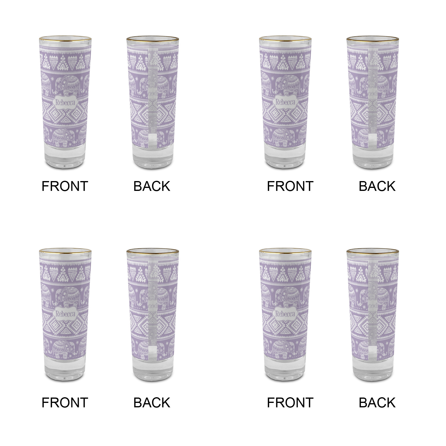 These glass shooter glasses are printed in full color with the design of your choice. These are a tall shooter 2 oz size and stand 4" tall. The print is a full wrap design to boldly display your personalization.
