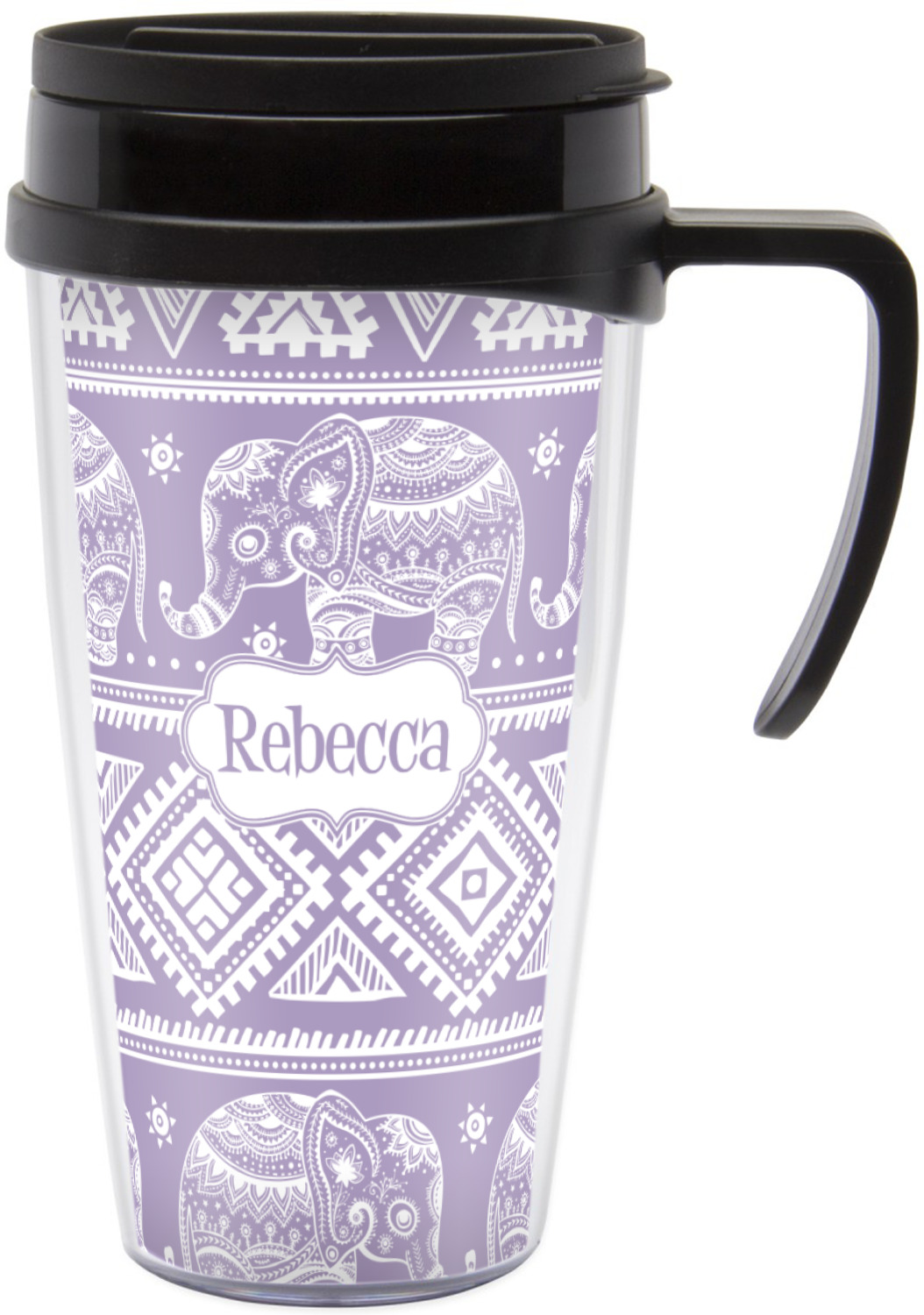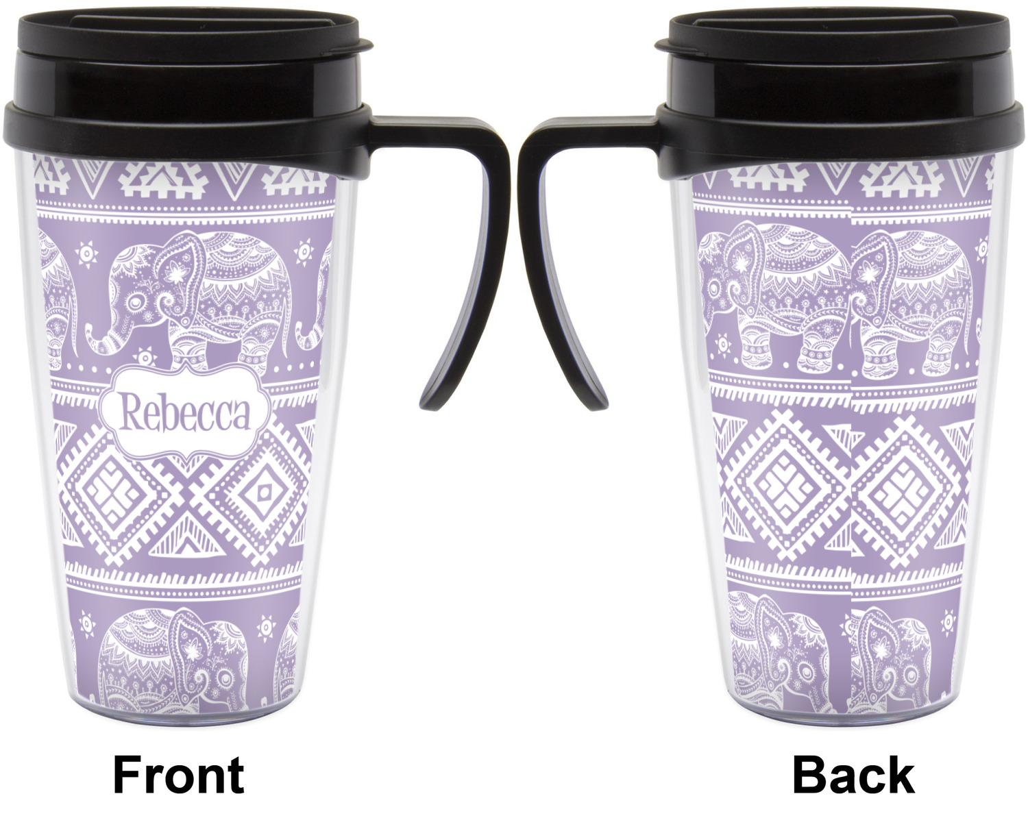 These thermal mugs are free of BPA, and insulated, to keep your drinks hot or cold. The black, snap on lid and the slider for sipping allows you to conveniently sip your drink without constantly worrying about a disastrous spill. We offer this mug with and without a handle, to better suit your needs. Each custom thermal mug holds up to 16 ounces of liquid and displays your customization on all sides on premium gloss media inserts.