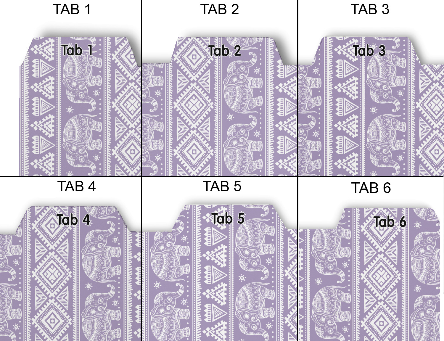 Whether you use binders at school or at work, we have designs to suit all of them. Available in 5 or 6 tab sets, you are sure to find a set to suit your needs. The back of each one is white and can be used to take notes, write vital information on, etc.