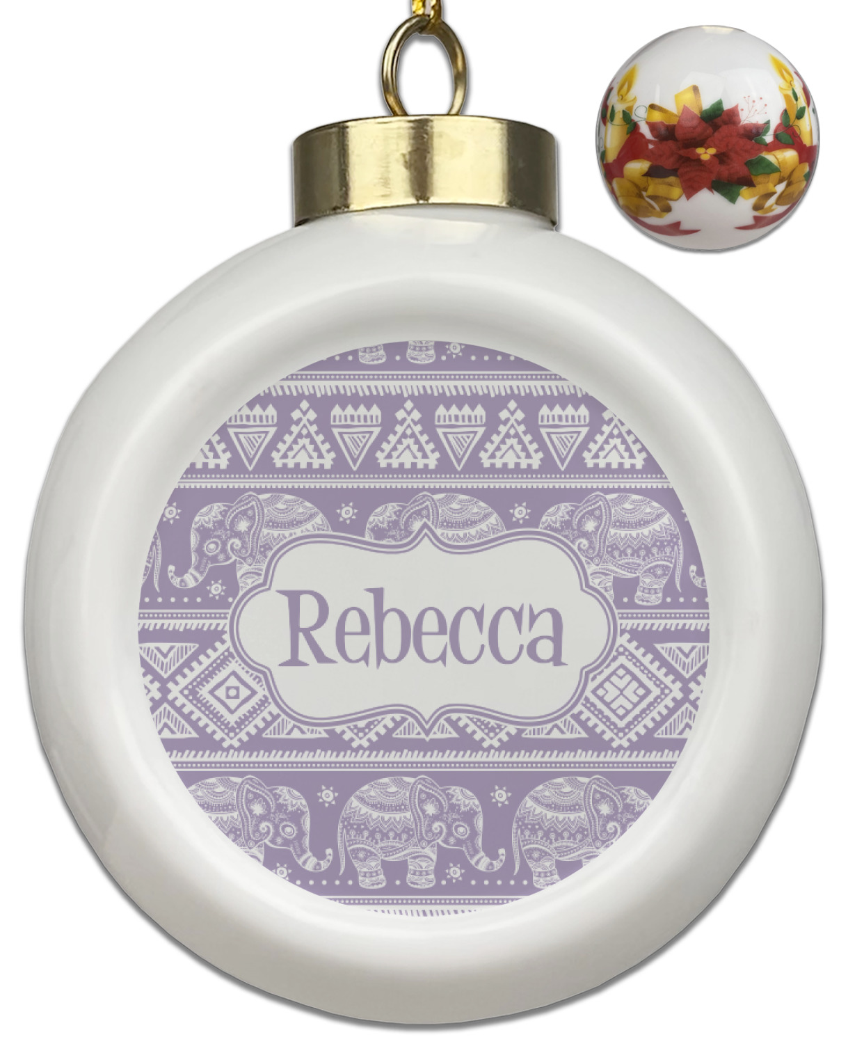 Our Christmas ornaments are a unique ceramic ball shape with a twist as it has a flat face to display your custom design! Select from one of our two design types - Christmas Tree or Poinsettia Garland - to adorn the curved back of your personal design. Each ornament measures 3H x 2.5W x 2D accompanied with a gold string accent for finishing touches to hang on your beautiful Christmas tree!