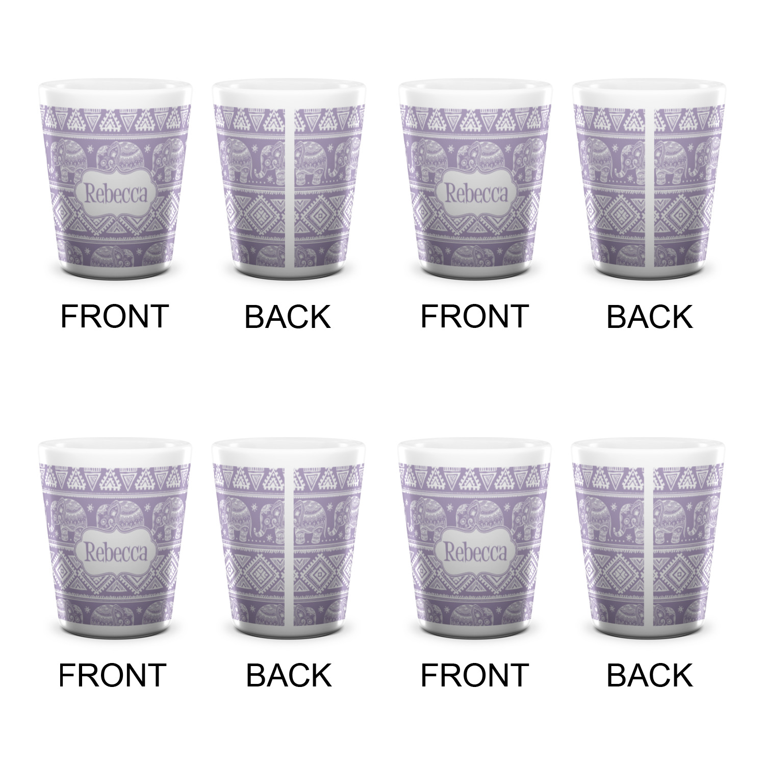 Made from ceramic these shot glasses are printed in full color with the design of your choice. These are a standard 1.5oz size and stand 2.25" tall. Available in a full white ceramic or a two-tone with a black color inside the shot glass. Buy a single or a set of 4, all of which can be designed separately to get you just what you want and need.