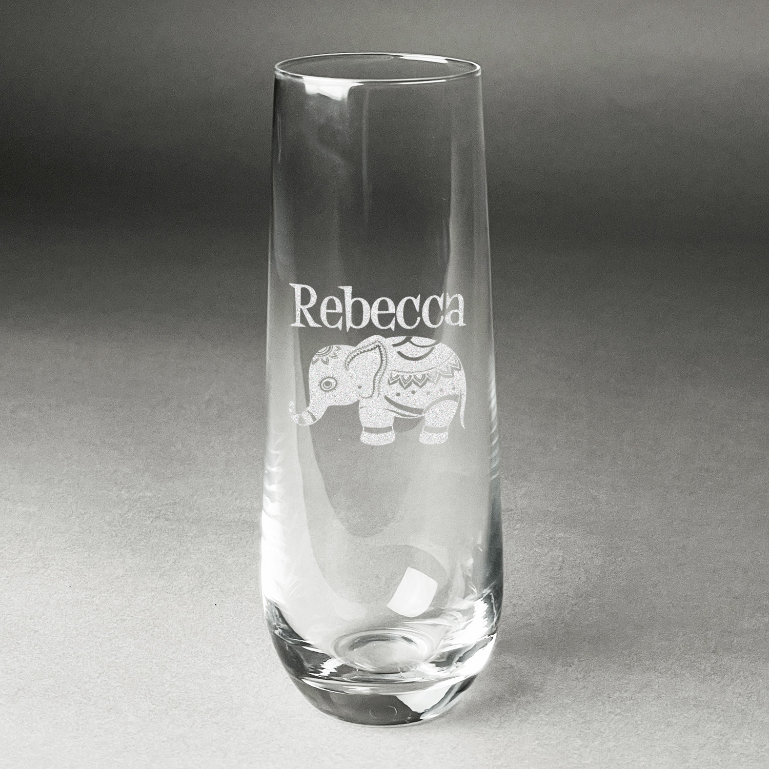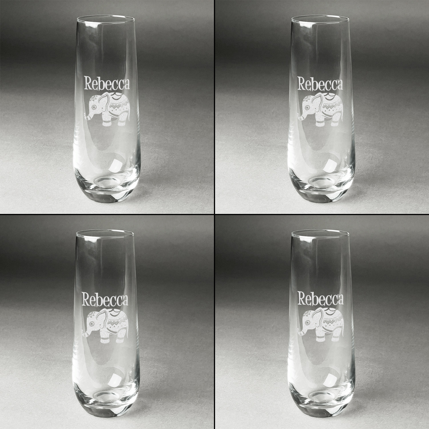 Design your custom stemless champagne flutes and we will then laser engrave your unique design on them for you. Whether they are a special gift for a bride and groom, for your New Years Eve party, or a bachelorette party you are sure to be able to add a custom personalized touch to make them perfect for the occasion.