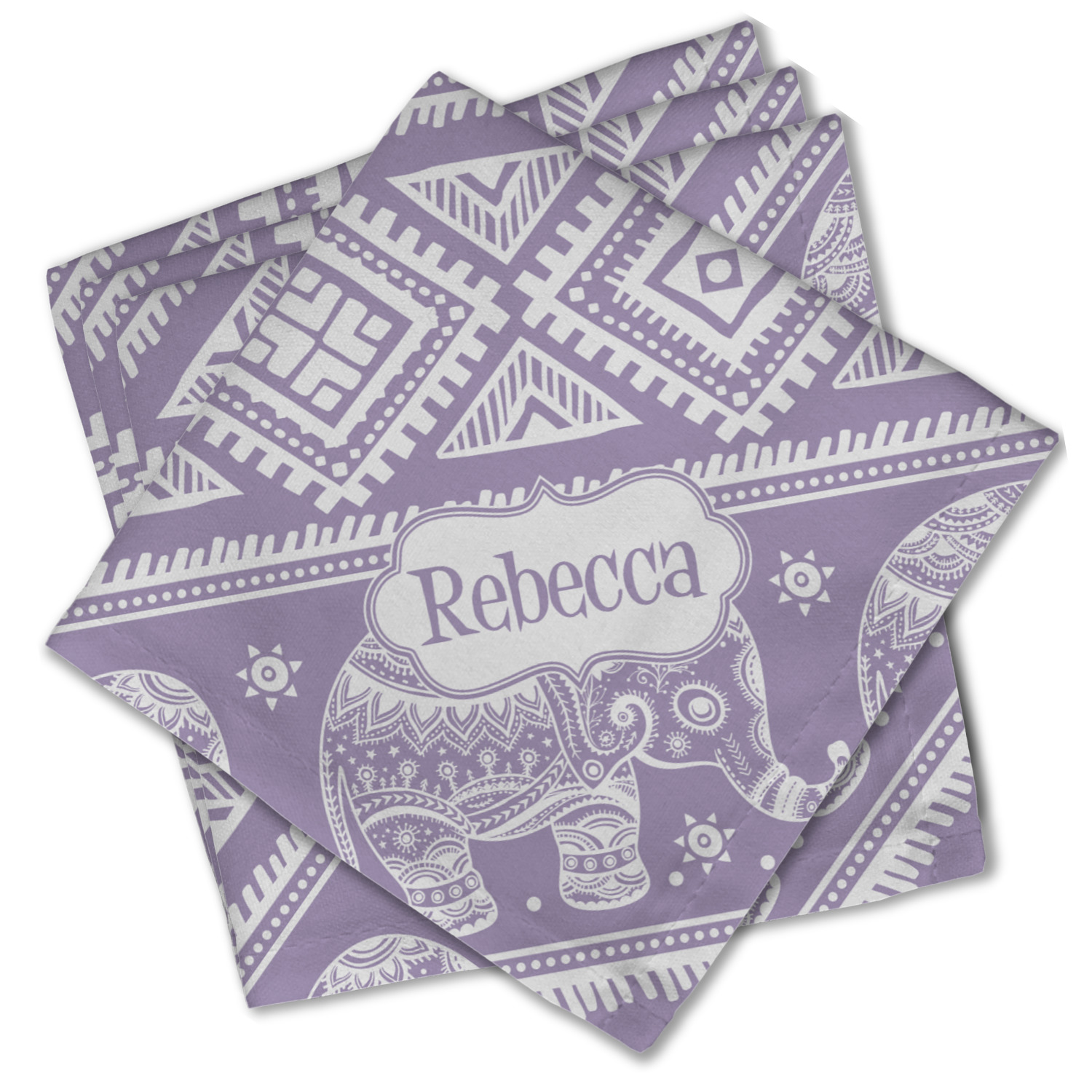 Each customizable cloth napkin is a polyester material guaranteed for long-term use. Since our napkins are cloth, it serves as a great reusable and eco-friendly dining decor. We sell personalized napkins individually or as a set of 4! Print your own unique design on all four napkins, or create four individual designs for each napkin! We offer two different napkin sizes - Cocktail napkins (approx. 10 x 10) and Dinner napkins (approx. 20 x 20). We print your design on one side, perfect for displaying your custom designed lunch napkins in any fold or table setting!