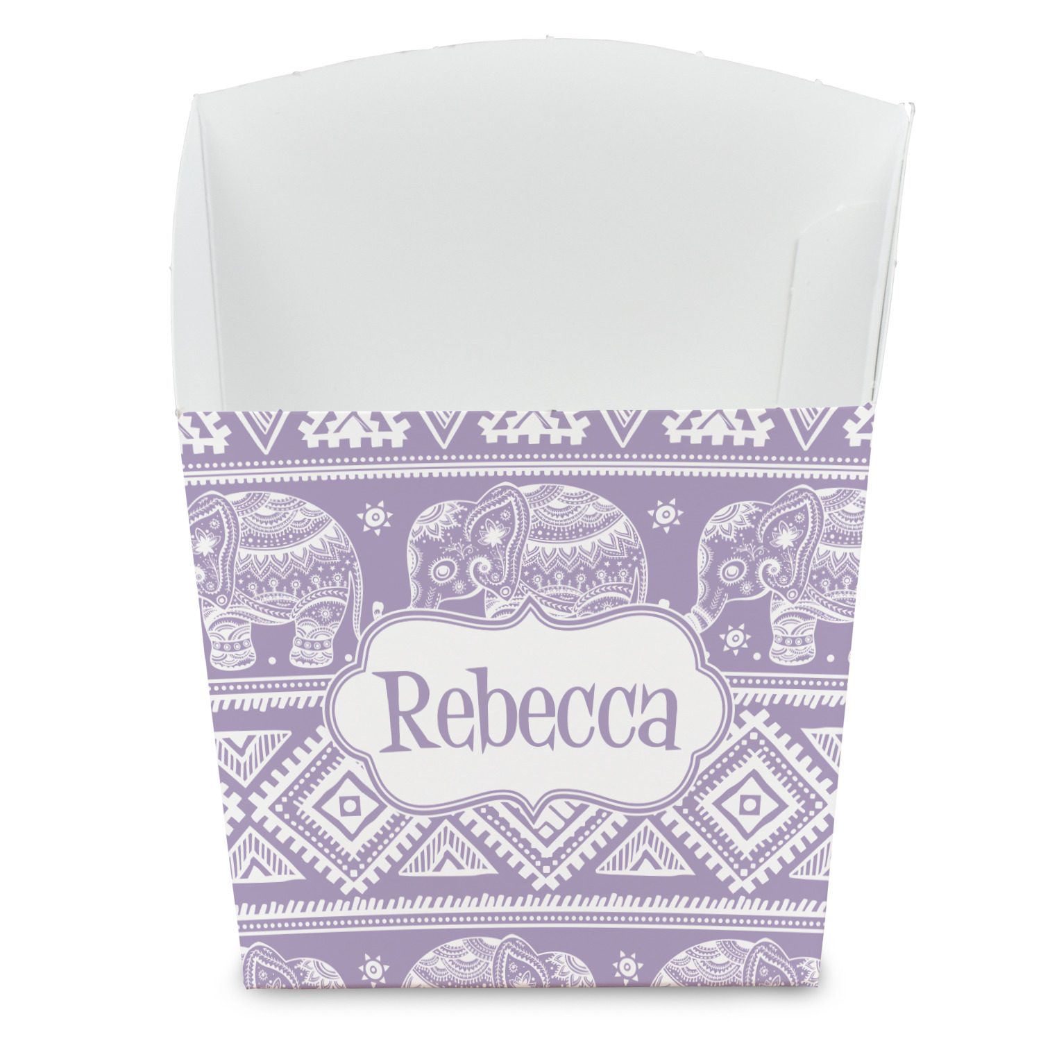 Since it is an open box, it works very well as a party snack cup (instead of plates) for different types of dry snacks and treats such as popcorn, cheezies, pretzels, chips, twizzlers, etc. This box can easily be carried with a drink all in one hand!
