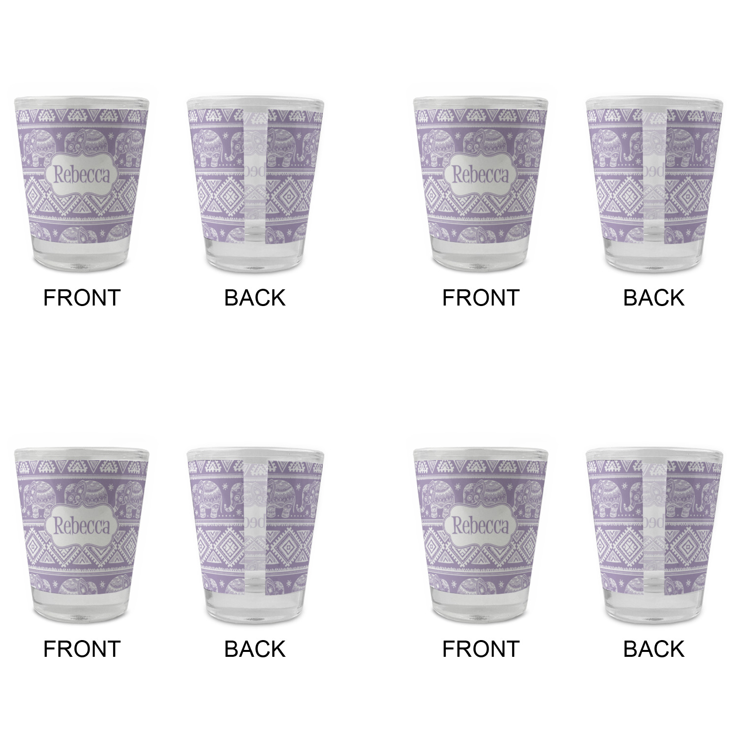 Made with frosted glass, these shot glasses are printed in full color with the design of your choice. They are a standard 1.5oz shot glass and are 2.4" tall. The print is wrapped around the shot glass in a full wrap and boldly displays your customization.