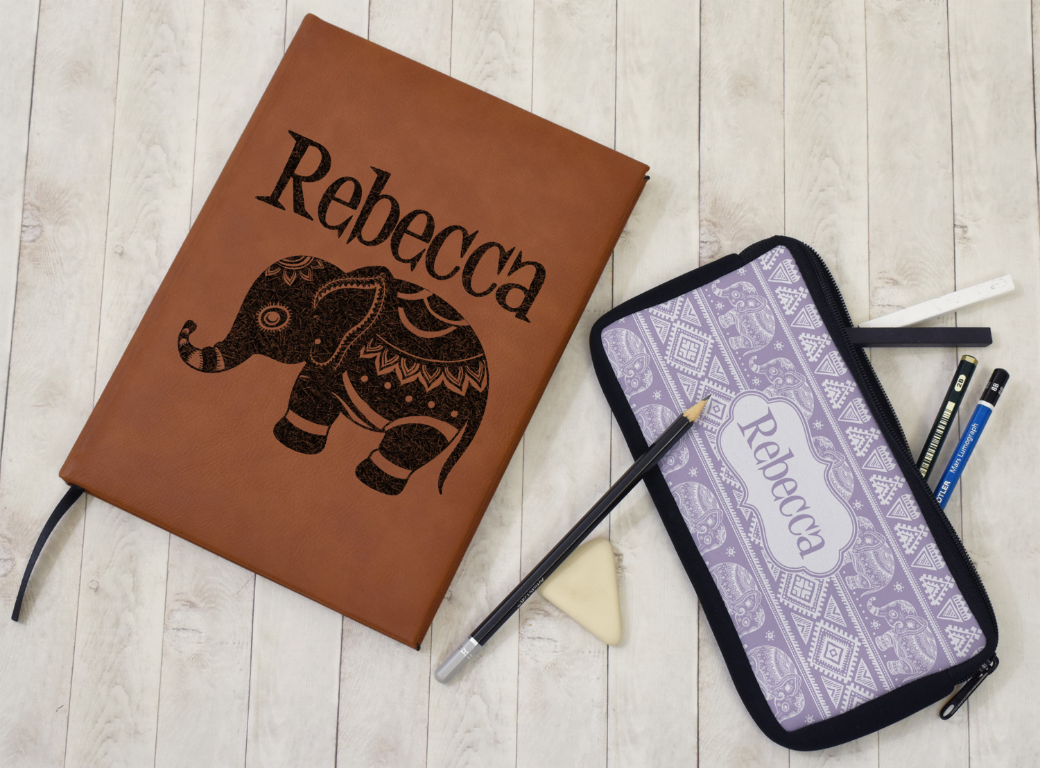 The faux leather covers are a rich cognac / rawhide color and can be customized with your design. From a simple name or monogram or a logo to a detailed mandala - the choice for customization & personalization is truly yours. Customize one of our designs or upload your own.