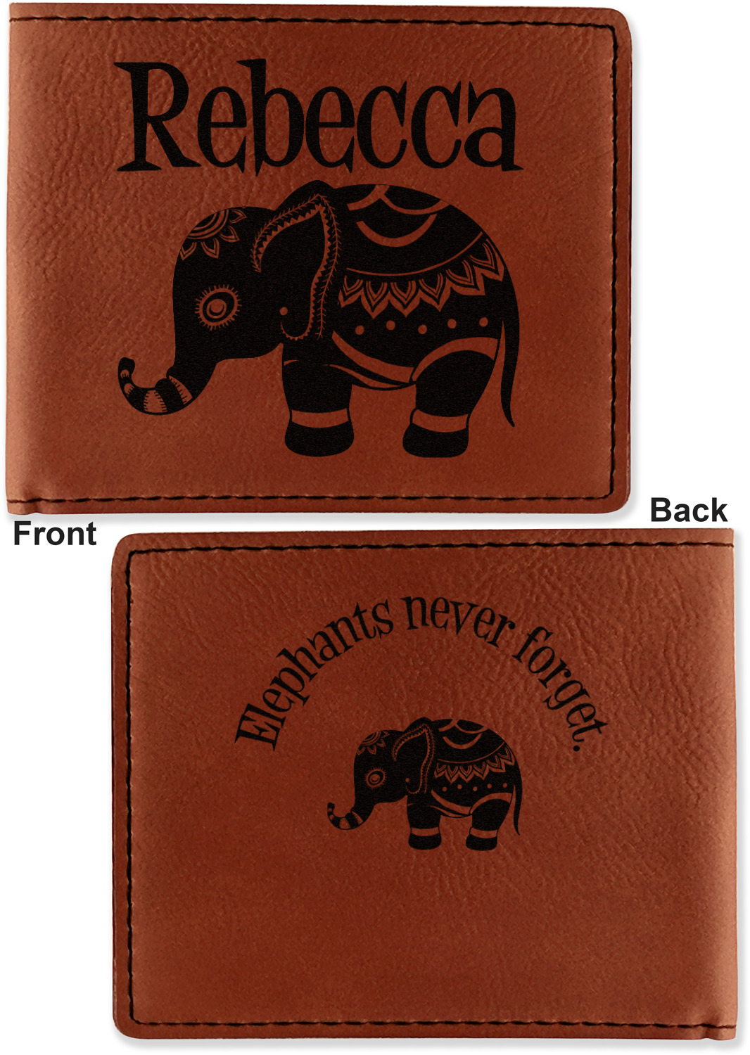 Your bifold wallet will be personalized by laser engraving, which will be a black color on the wallet. Choose a graphic, text, or monogram to personalize your wallet. There are thousands of choices in our design center.