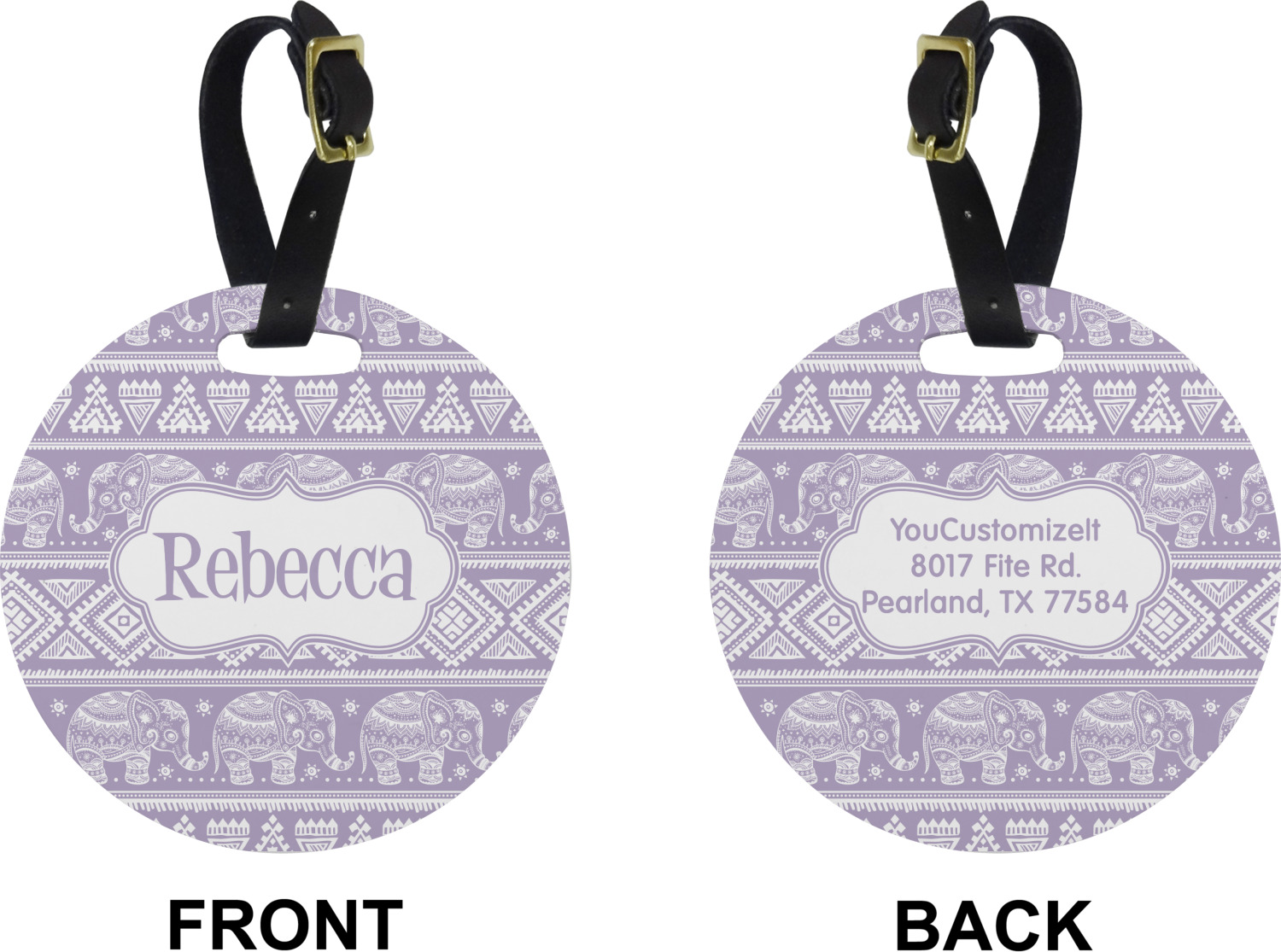 These cute luggage tags are made of a fiber-reinforced, UV-resistant plastic, making them waterproof and durable enough for both everyday use and the rugged adventures of any traveler! A leather strap with holes and a buckle is included with your purchase and can be used to attach your custom luggage tag to any suitcase, backpack, or duffel bag. You can design these travel tags as you wish; your customization will be displayed across the front, while the back will show as little or as much personal information as you want.