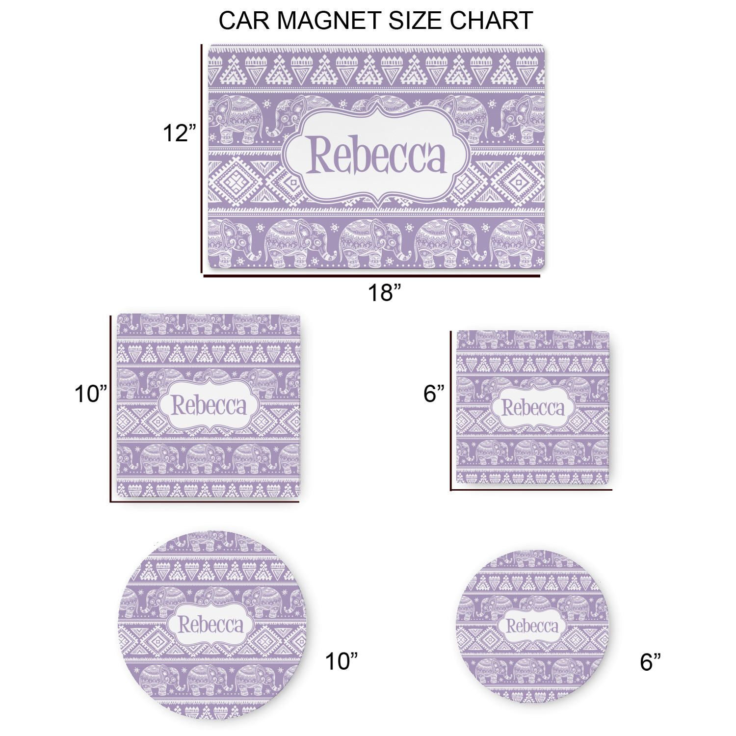 Your personalized car magnets are available for purchase in two shapes and two sizes. We carry round and square editions; each shape can either be 6 by 6 inches, or 10 by 10 inches, depending on your needs. Both versions are 1 millimeter thick, which is considered, within the industry, as the ideal thickness for automobile magnets. The magnetic car decals will adhere to any smooth, metal surface of your cars body, such as the trunk door or a side panel. However, please note that some vehicles are constructed from fiberglass bodies, which prevents the adhesion of anything magnetic. We advise that you test your vehicle before purchasing these magnets.