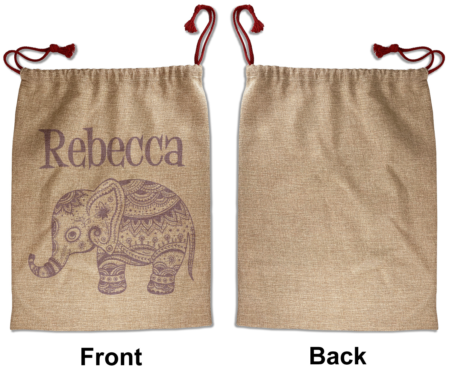 Our Santa sacks print your design on the burlap material giving it a nice rustic, natural design! The burlap material is also machine washable and wrinkle-free, so feel free to fold and store out Santa bags until the next time you need it! Secure your gifts with our red accent drawstring ties at the top of the sack so the mystery of your gift stays a surprise until Christmas day. We offer two types of printing- one side partial print or double-sided partial printing. Design and personalize your own Santa sack in time for the holidays!