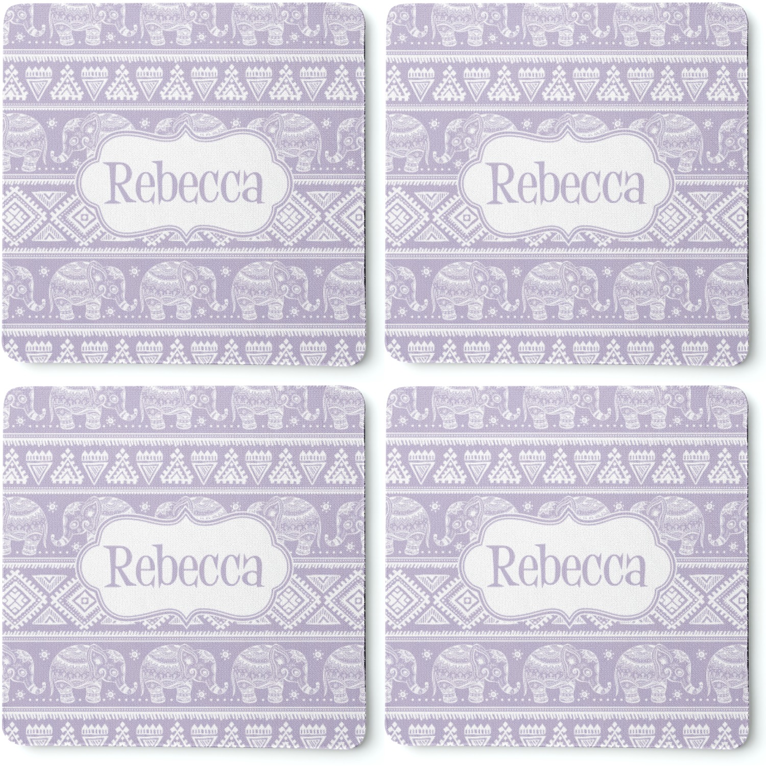These drink coasters have a smooth, polyester top and a textured, rubber backing on its bottom. The non-slip rubber backing underneath works to keep any spills at bay. At 4 by 4 by 0.25 inches thick, these custom coasters are a suitable size for most drinkware. Your personalization is displayed atop the face of the cup coaster. We sell these rubber coasters in two different shapes: square and round. You can buy each shape as singulars or as a set of 4.