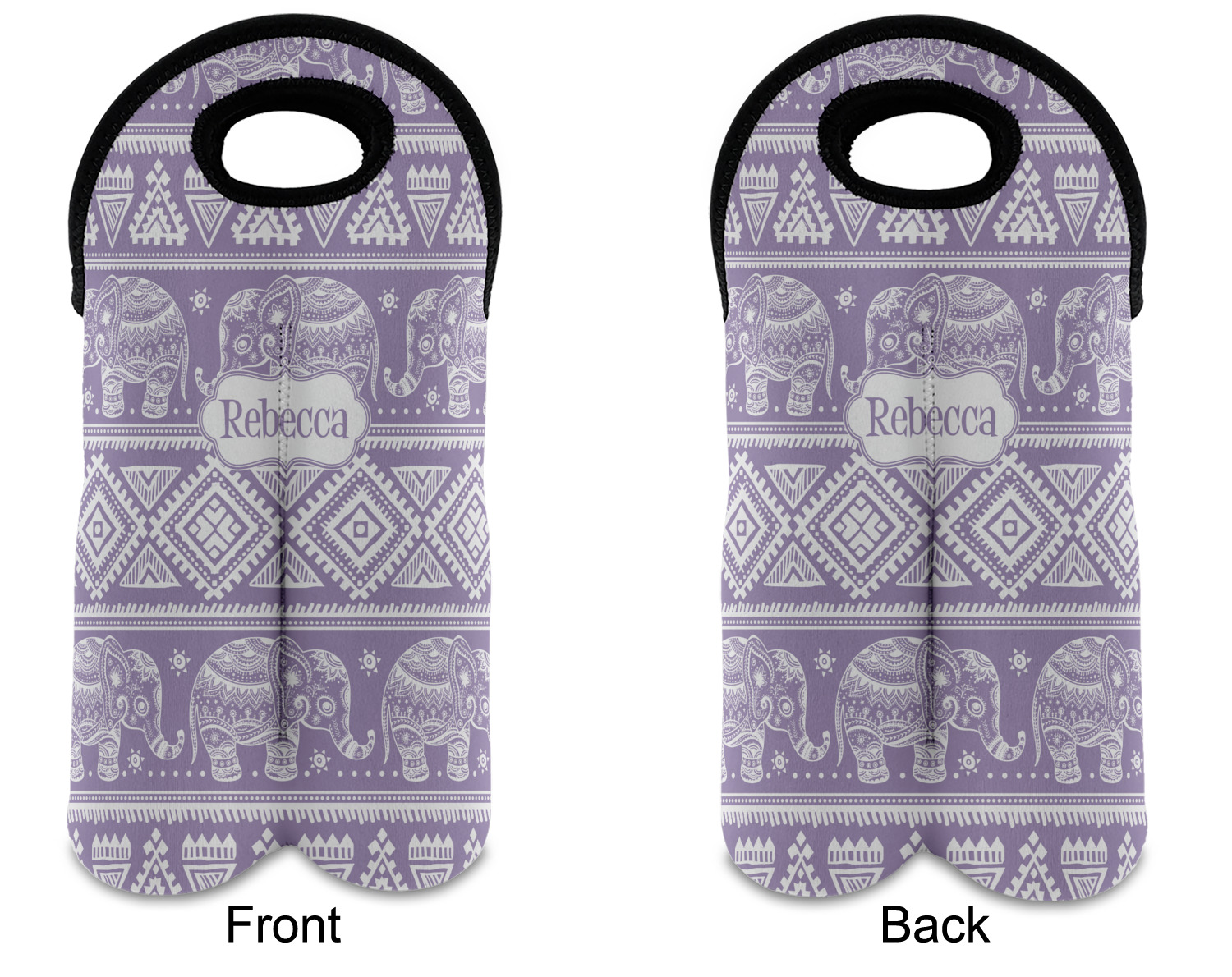 These tote bags are insulated to keep the bottles cold and have a stitched separation down the middle and double handles to keep the two bottles safe and secure during travels.