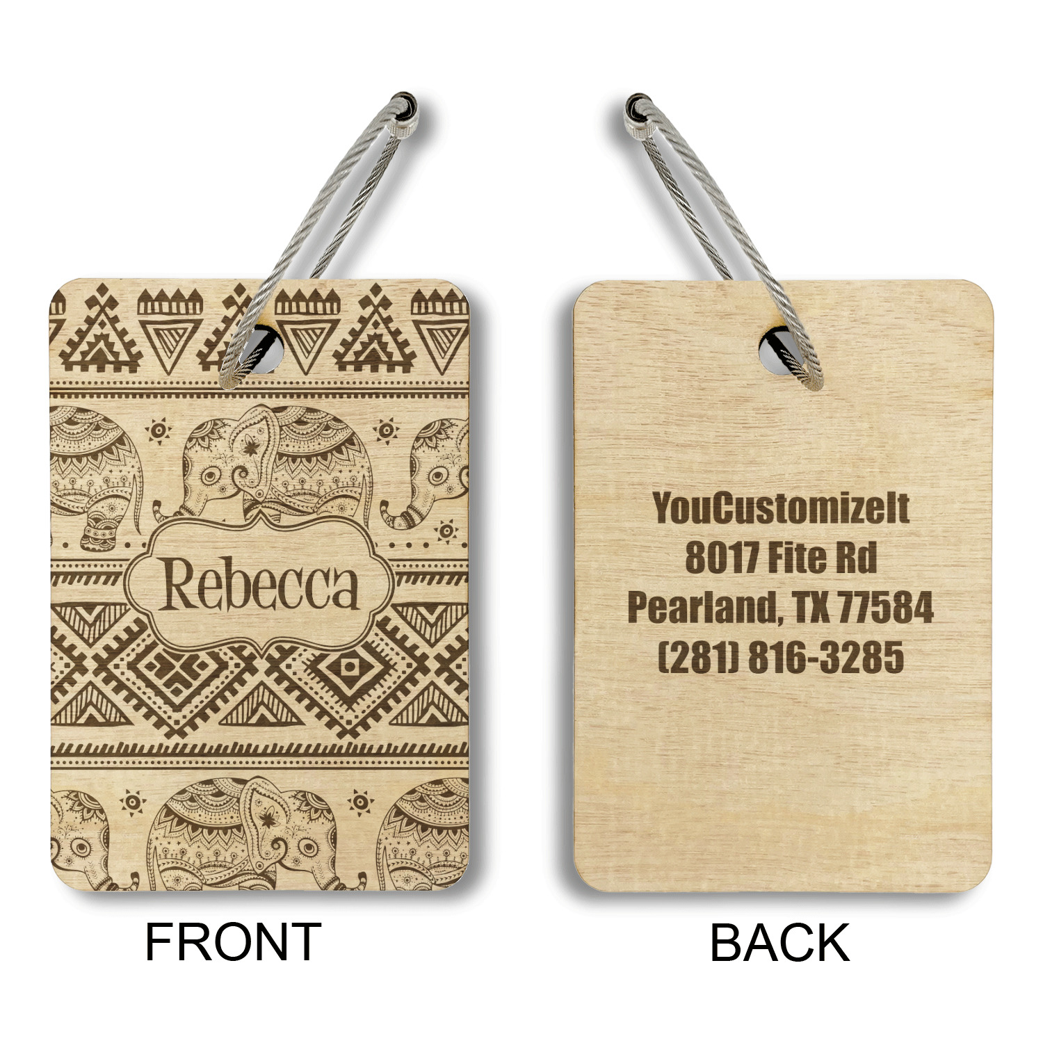 Made from a premium hardwood, these luggage tags are laser engraved and cut just for you. The front contains your design of choice and the back has your contact information to ensure your luggage gets back to you if ever lost.