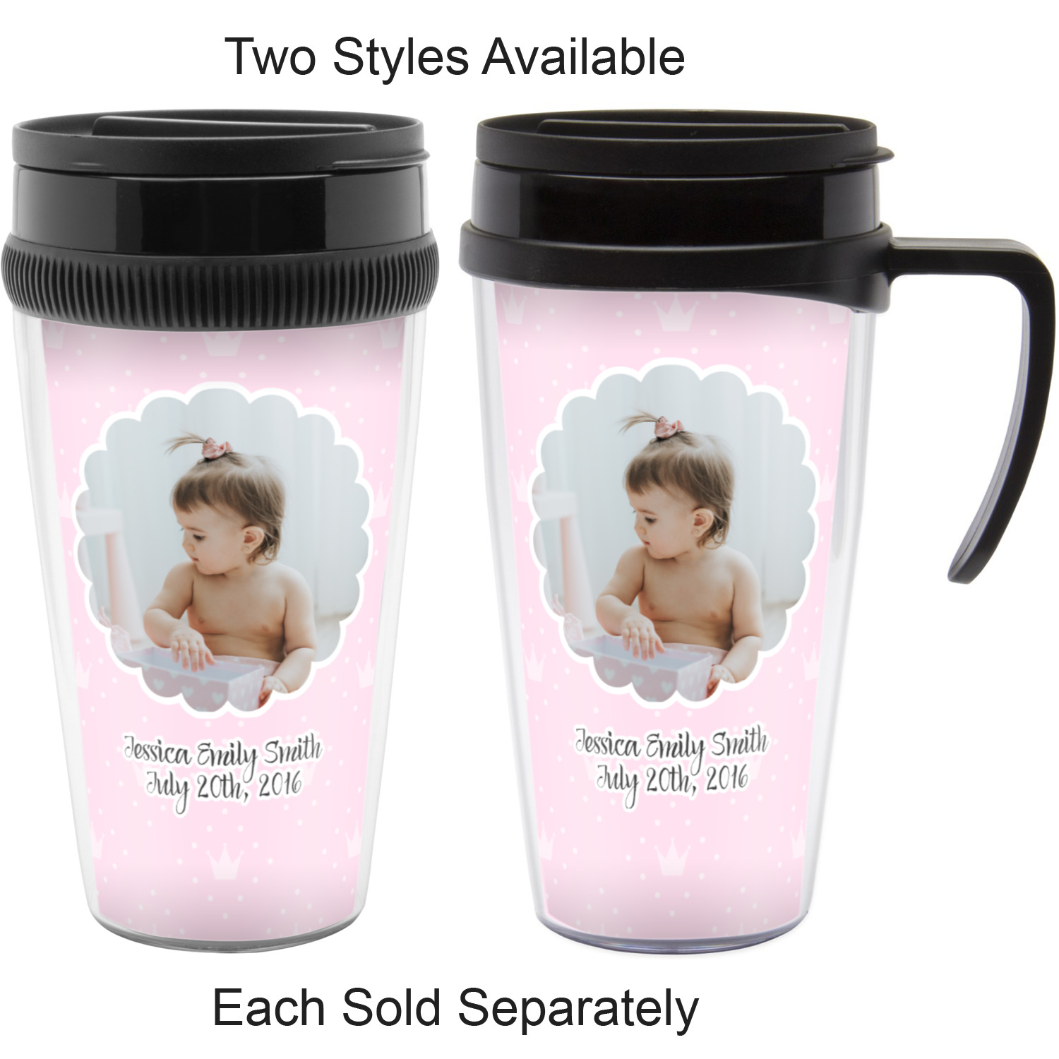 Keep your drink secure while on your daily commute with one of our personalized travel mugs! These travel mugs will add a splash of color and creativity to your kitchen counter-top, car cup holder, office desk, or wherever you choose to place them! With these custom mugs, you'll never have to settle for a boring, run-of-the-mill travel mug.