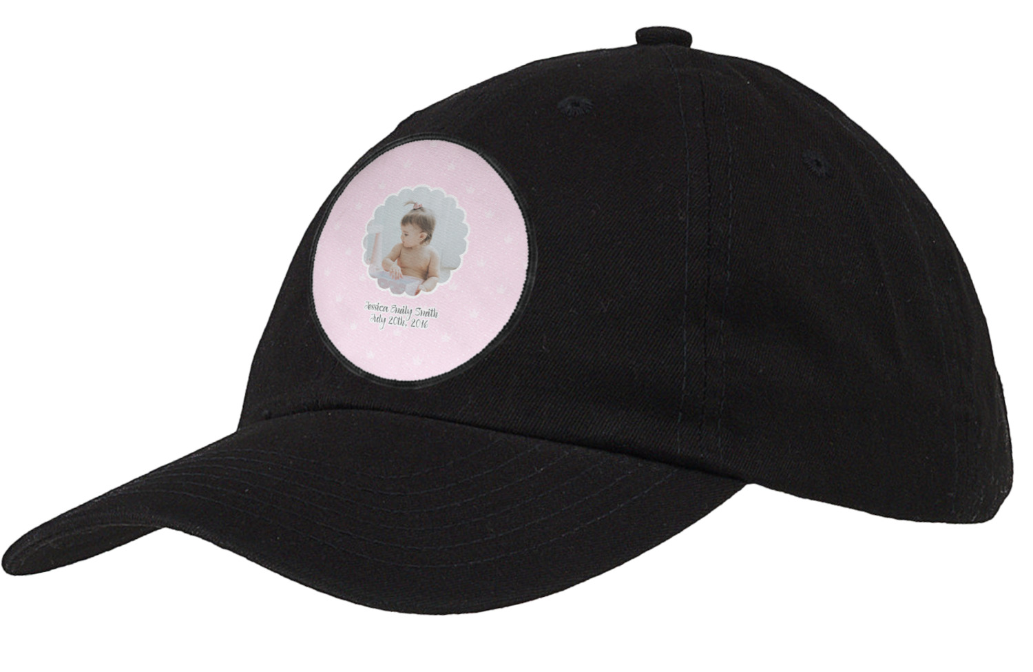This design is for baby girls. The background is a baby pink background with crowns and polka dots. In the middle of the design is a scalloped frame to upload your baby's picture into (make sure it is high quality!). Underneath you are able to put personalized text with their birthday or whatever you like.