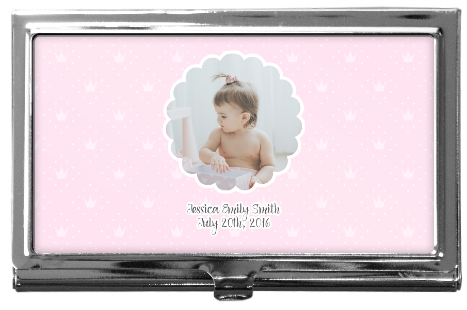 Our personalized business card holders are built from a robust, stainless steel and shaped into a sleek rectangle. At 3.75" x 2.5", and 0.25" thick, this nifty accessory holds up to 12 to 15 business cards, depending on the thickness of the cards themselves. Regardless, the skinny style makes it the perfect fit for your purse or pocket. The lid of your custom business card holder features a protruding tab to open and close your holder with a snap. To protect the mint condition of your cards, the interior of this metal business card holder is lined with a soft, felt fabric. We print your personalized design across the face of the lid.