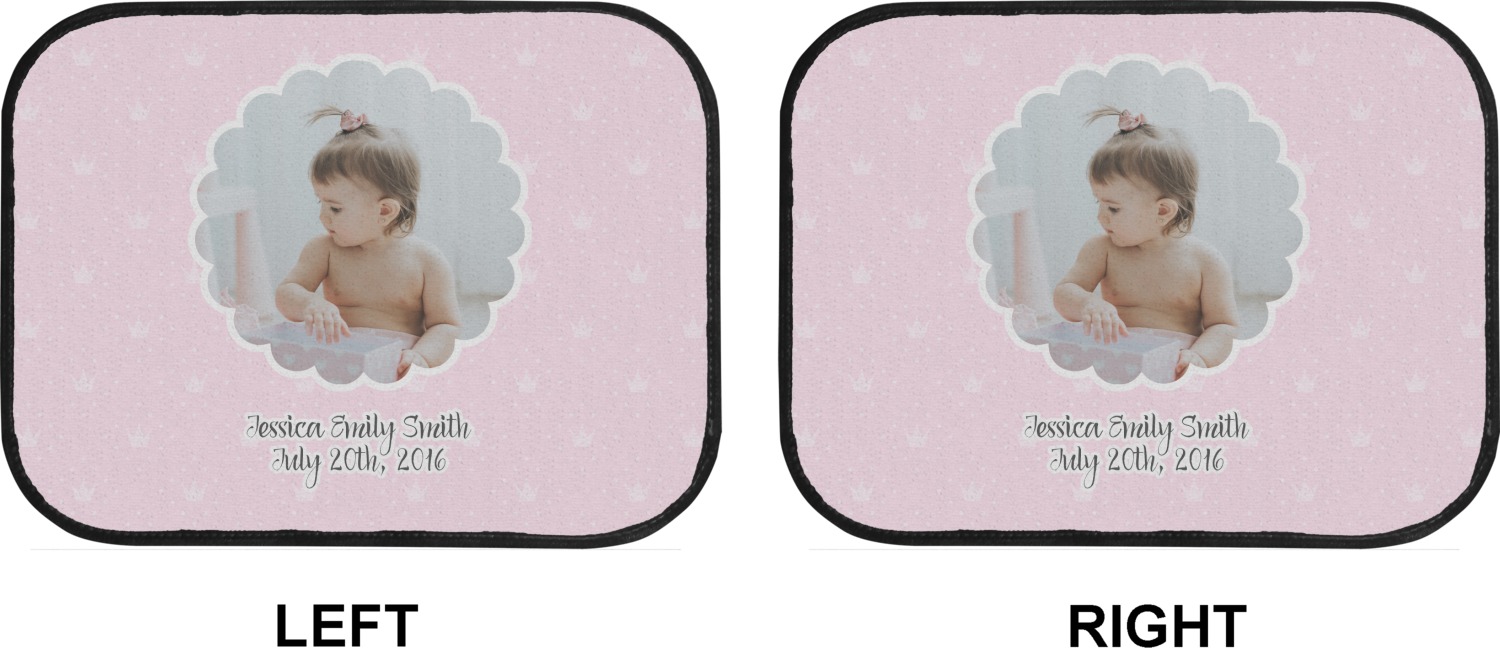 We craft our auto floor mats mats from polyester, apply a black finish to the edges, and lined at the bottom to prevent slippage. These mats protect your floors from grass, mud, and any accidental spills. We display your personalized design on the front face of each mat. The sizes of these car floor liners are standardized to provide a versatile fit for all vehicles. The front rows car mats measure at 17 by 26.5 inches, while the back rows measure at 17 by 13 inches. We sell three packages of car floor mats. You can purchase a pair of front row car mats, a pair of back row car mats, or a set of front row and back row car mats. To make an informed purchase, we recommend measuring the surface area of your car floors.