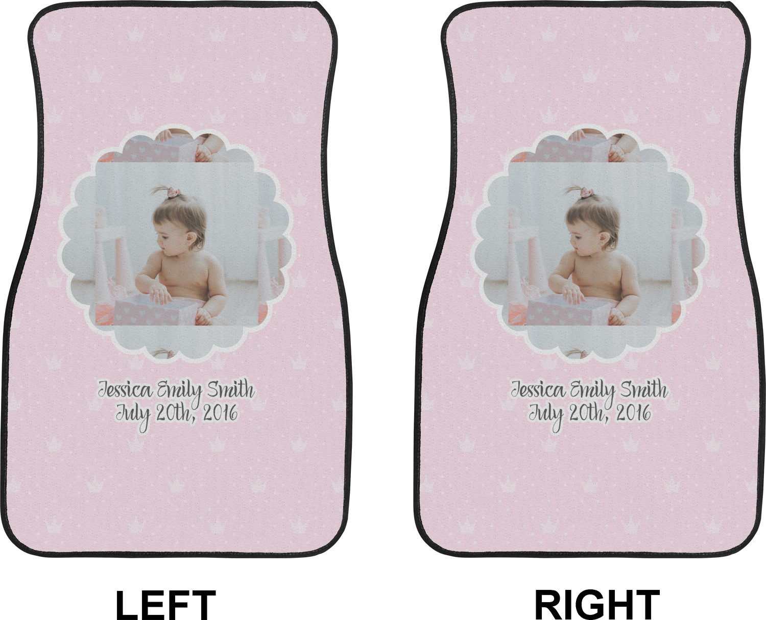We craft our auto floor mats mats from polyester, apply a black finish to the edges, and lined at the bottom to prevent slippage. These mats protect your floors from grass, mud, and any accidental spills. We display your personalized design on the front face of each mat. The sizes of these car floor liners are standardized to provide a versatile fit for all vehicles. The front rows car mats measure at 17 by 26.5 inches, while the back rows measure at 17 by 13 inches. We sell three packages of car floor mats. You can purchase a pair of front row car mats, a pair of back row car mats, or a set of front row and back row car mats. To make an informed purchase, we recommend measuring the surface area of your car floors.