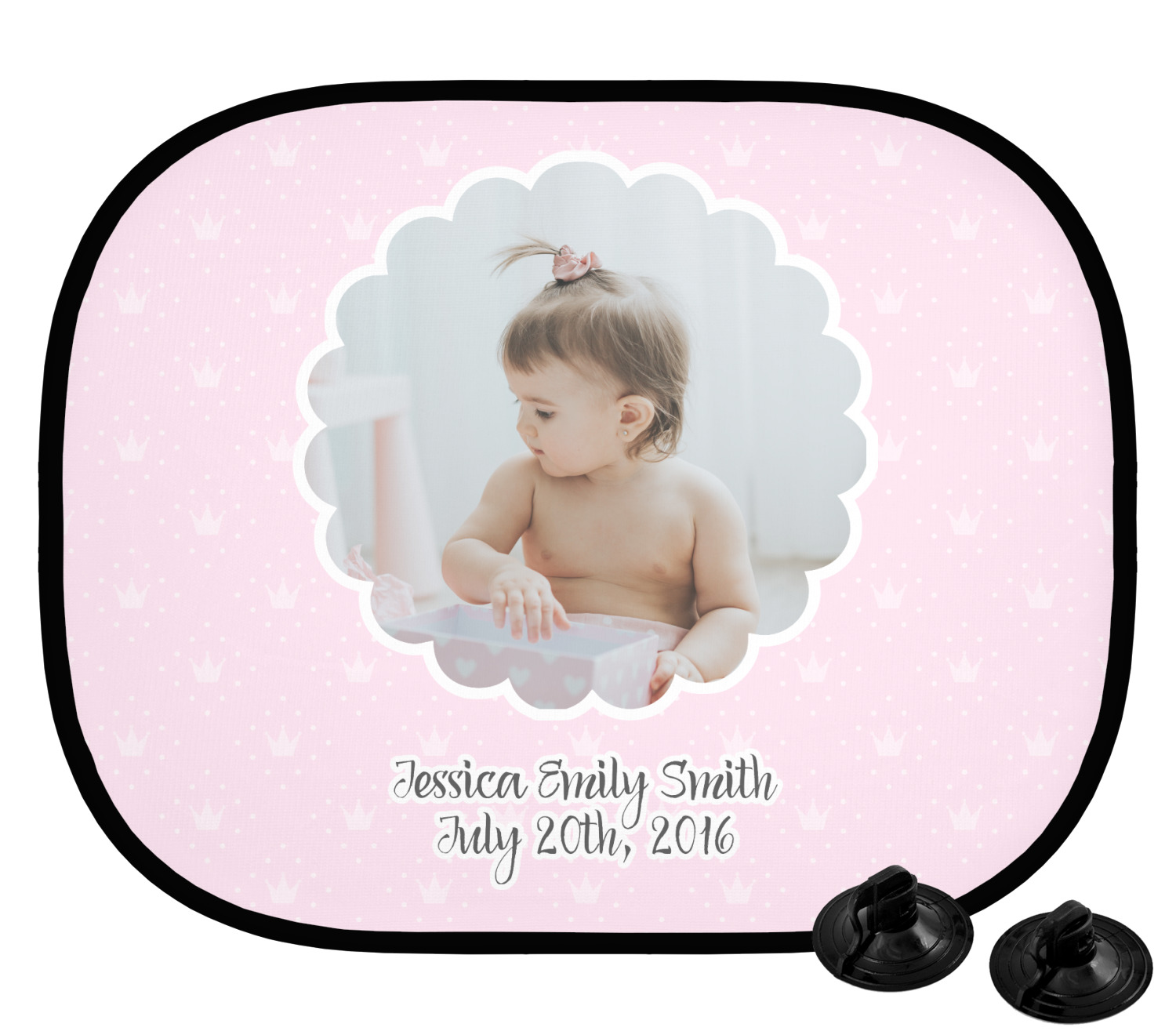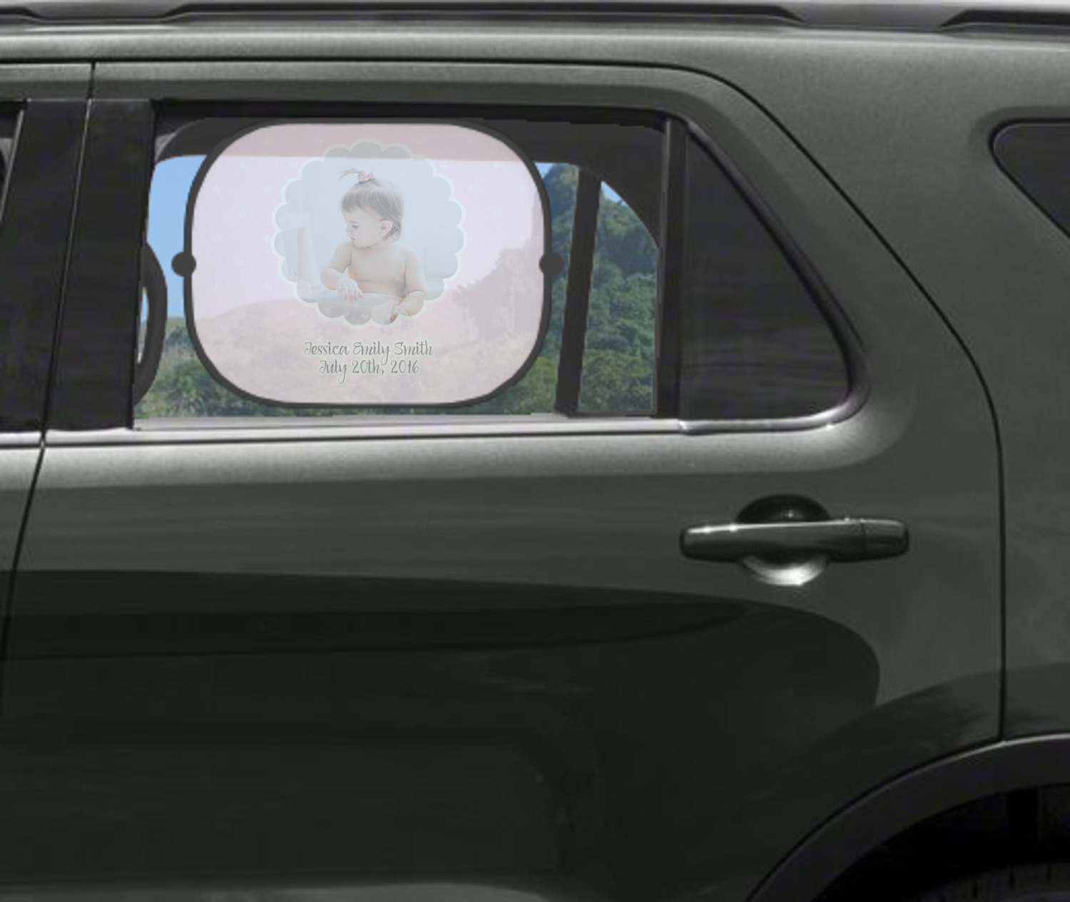 Our car sun shades are a perfect, personalized, multipurpose item that you can add to your car. The shades block most sunlight from your little ones' faces, keep the backseat a bit darker, and add a cute touch of personality to your windows.