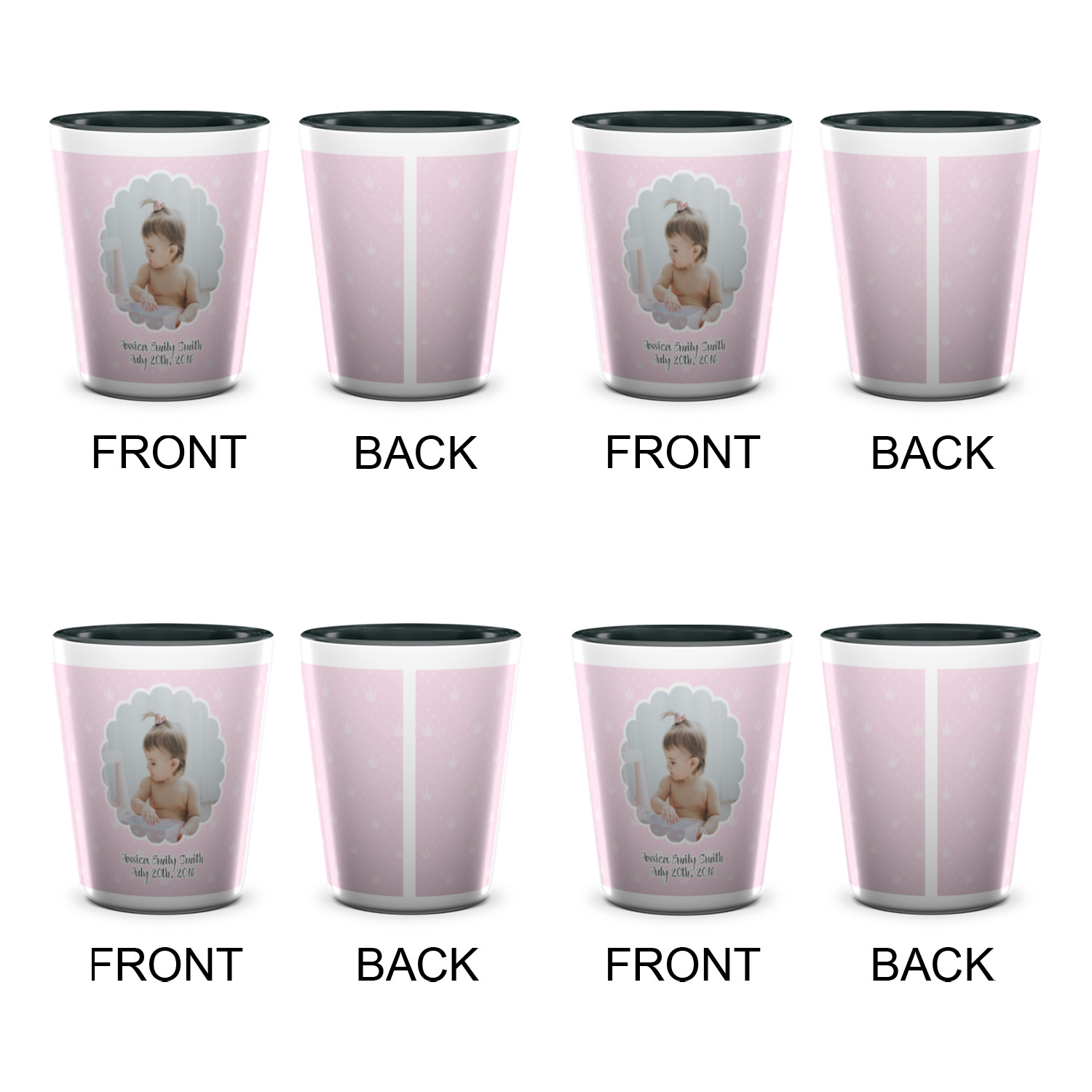 Made from ceramic these shot glasses are printed in full color with the design of your choice. These are a standard 1.5oz size and stand 2.25" tall. Available in a full white ceramic or a two-tone with a black color inside the shot glass. Buy a single or a set of 4, all of which can be designed separately to get you just what you want and need.