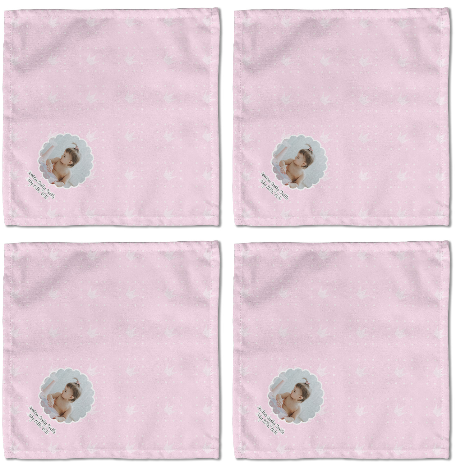 Each customizable cloth napkin is a polyester material guaranteed for long-term use. Since our napkins are cloth, it serves as a great reusable and eco-friendly dining decor. We sell personalized napkins individually or as a set of 4! Print your own unique design on all four napkins, or create four individual designs for each napkin! We offer two different napkin sizes - Cocktail napkins (approx. 10 x 10) and Dinner napkins (approx. 20 x 20). We print your design on one side, perfect for displaying your custom designed lunch napkins in any fold or table setting!