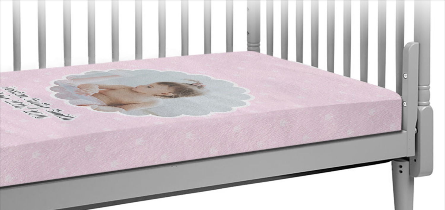 Made from a minky-like fabric, these fitted baby sheets are soft and gentle for your baby's skin. They are printed, cut, and sewn right here in the USA, using eco-friendly ink and non-toxic, irritant-free materials. An elastic band runs around the edge of these sheets and ensures a snug fit on all standard crib mattresses that measure 28 by 52 inches. Your customization is displayed across the front of these sheets in vibrant colors. The fine craftsmanship of these crib sheets makes them the perfect addition to your collection of baby bedding!