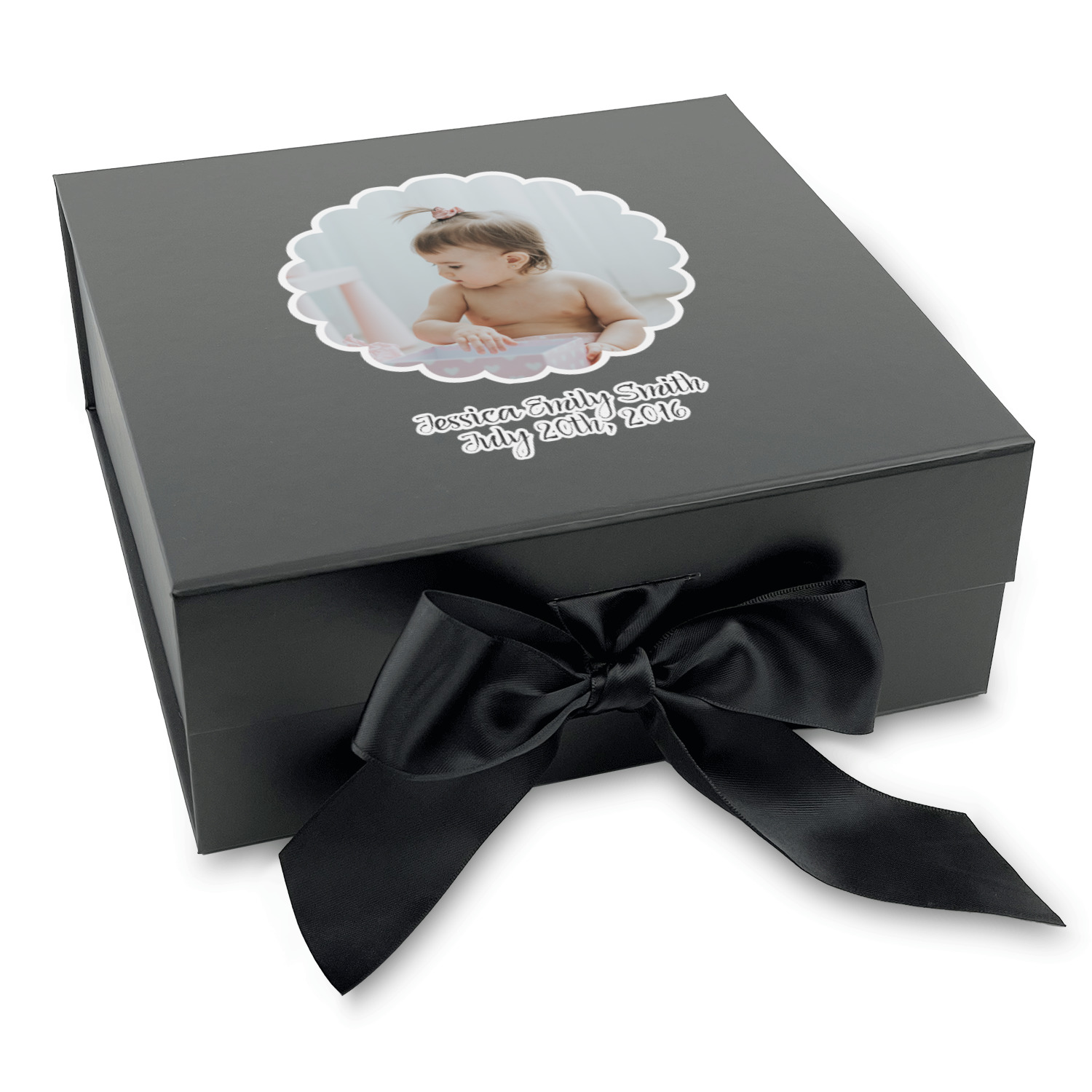 Design your own using our design library and we will print your artwork onto the lid of the gift box. When the box is closed the ribbons can be tied to secure the lid and add to the elegant look of these gift boxes.