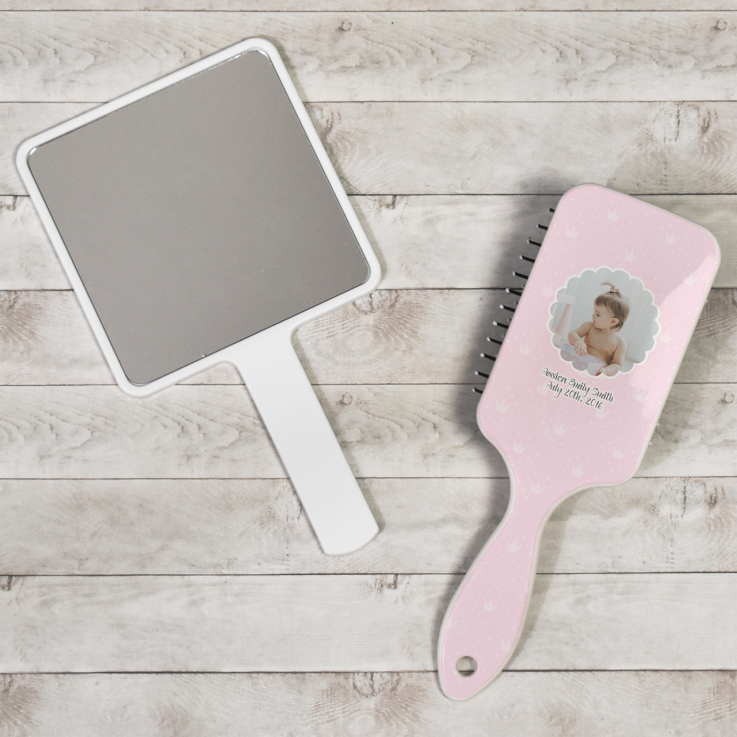 These hair brushes pair with our customizable hand mirrors to make a great gift set.