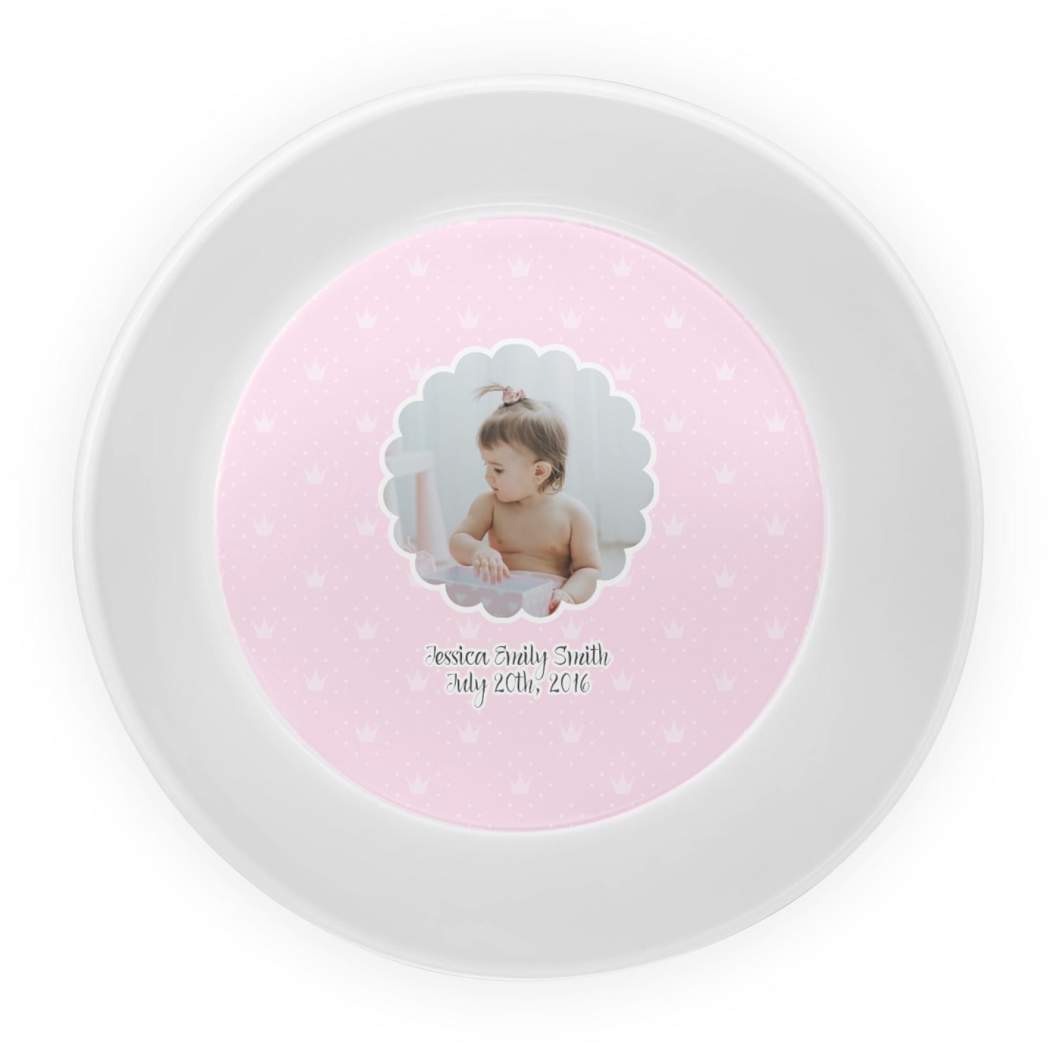 Our melamine dinnerware are BPA free, break-resistant, and dishwasher safe. Our first model has a more functional, standard look, and can hold up to 8 ounces of liquid. The second version we offer has a tapered edge and can hold up to 12 ounces of liquid. Both bowls display your customization on the base of the bowl's inside, and the exterior of the two models are both white.