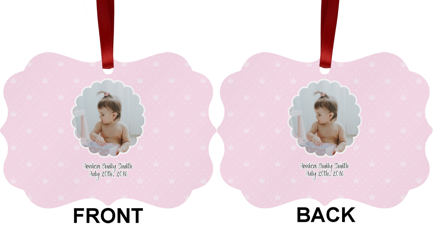 We offer double-sided printing on our personalized metal ornaments all with a gloss finish to make sure your Christmas tree continues to illuminate through the night. We offer 4 different metal ornament shapes to help express yourself or loved ones! Choose from our ball, paw print, star, or frame metal ornaments. Each metal ornament is an aluminum material sure to last you as many years as needed to share the joy and warmth of the holiday. We pair each customizable ornament with a red ribbon to tie your ornament and hang on your Christmas tree!