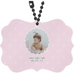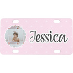 This design is for baby girls. The background is a baby pink background with crowns and polka dots. In the middle of the design is a scalloped frame to upload your baby's picture into (make sure it is high quality!). Underneath you are able to put personalized text with their birthday or whatever you like.
