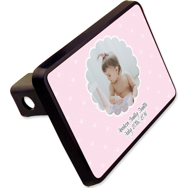 Our receiver hitch covers are molded, durable, and available in a size that fits 2in., square receiver holes. This model is best suited for a Class 3 or Class 4 hitch, but please consult our hitch sizing guide to make an informed purchase. We print your design on the surface of the rectangular cover, while the rest of the cover is a sleek, black color. The design's vibrancy will last up to 2 years in harsh sunlight. Designed for easy attachment, the cover slides easily into your trailer hitch and can be secured using a pin (not included).