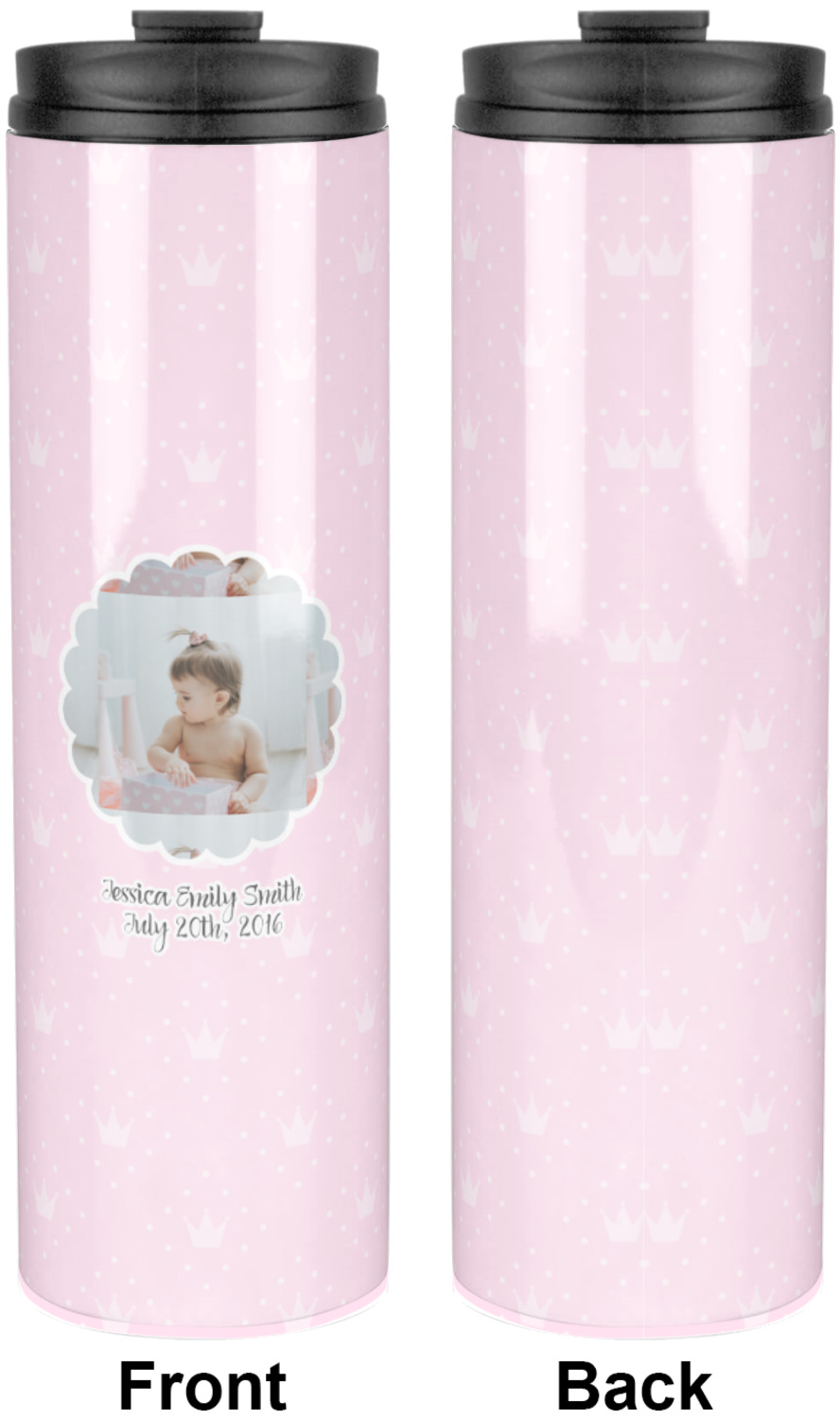 Sip your favorite drink on the go with your own custom stainless steel tumbler! Our slim cylinder shape is perfect for holding your drink in hand, in your purse, or in your backpack! This sleek and modern tumbler is a perfect gift for coffee and tea lovers keeping their drinks just the right temperature throughout the day! We offer two sizes, a 16 oz. or 20 oz., to personalize. Browse and customize or design or create your own with our online design studio!